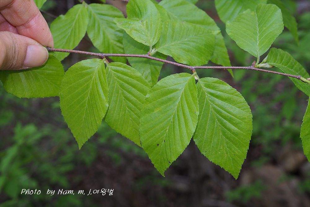 잎맥은 9~10쌍으로 잎 가장자리는 잔 톱니가 있다.
