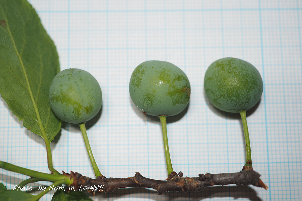 서양자두 보다 아주 작고 100원짜리 동전크기 정도로 황록색으로 익는다고 한다.