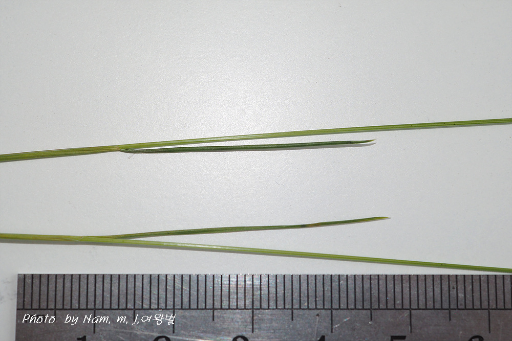 잎이 짧고 실같으며 하나의 줄기를 올려서 끝에 응축형 꽃차례가 달린다.