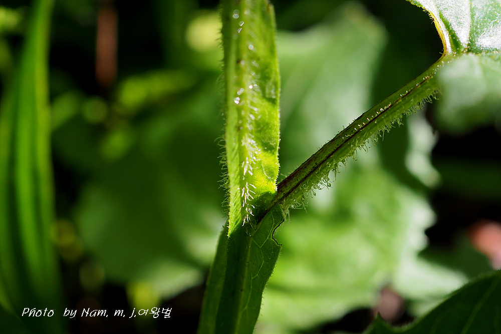 줄기에 날개가 흘러내리고 거센 털이 있다.