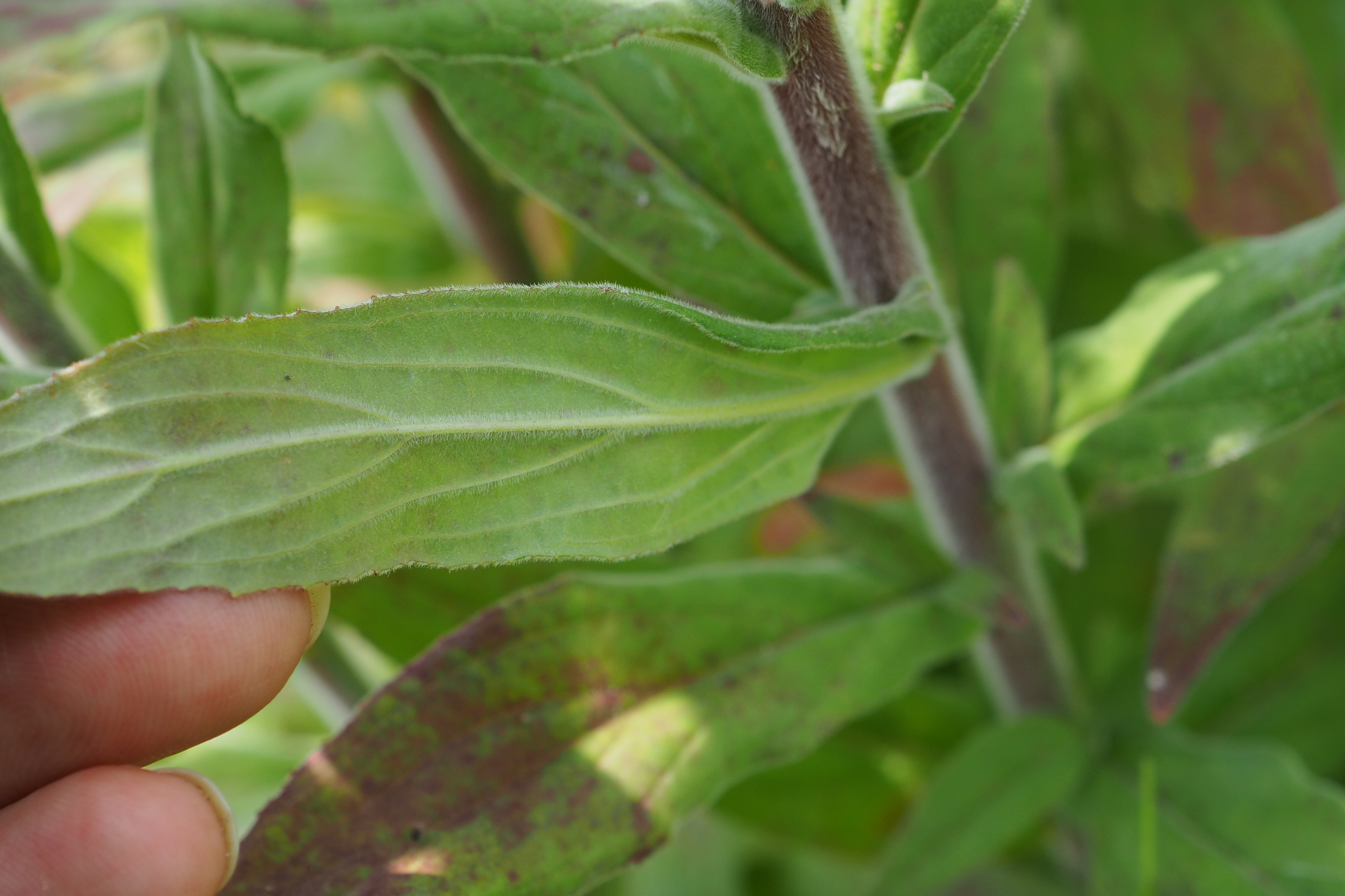 전초 크기는 큰바늘꽃 크기이지만 줄기아 잎 화서에 탈이 밀생한다.