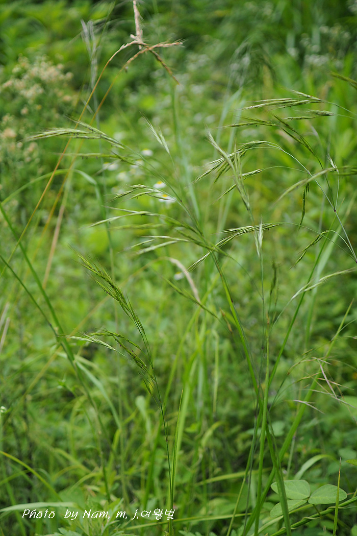 까락이 길고 소수가 가늘며 국내에 분포하는 참새귀리속 녀석들 중에서 가장 늦은 시기에 꽃을 피운다.