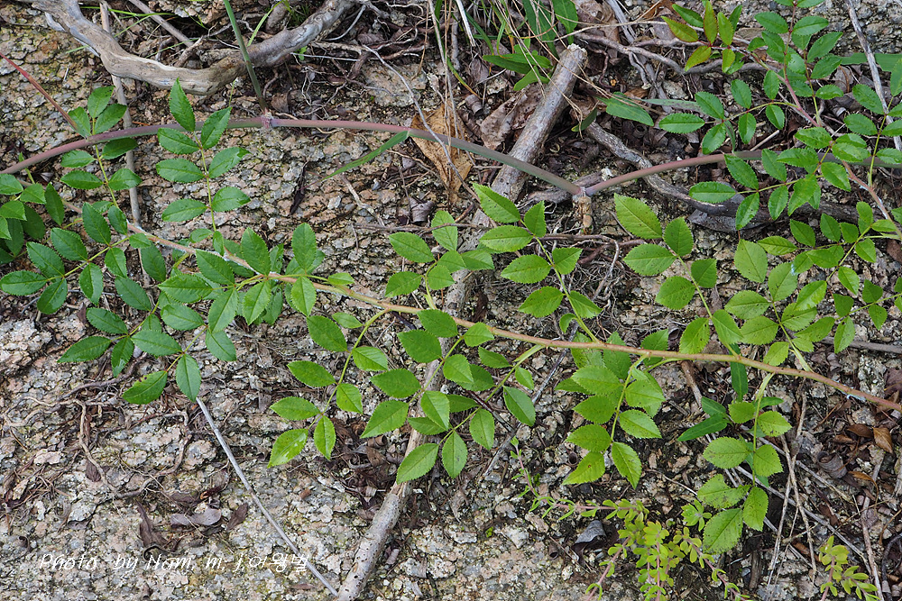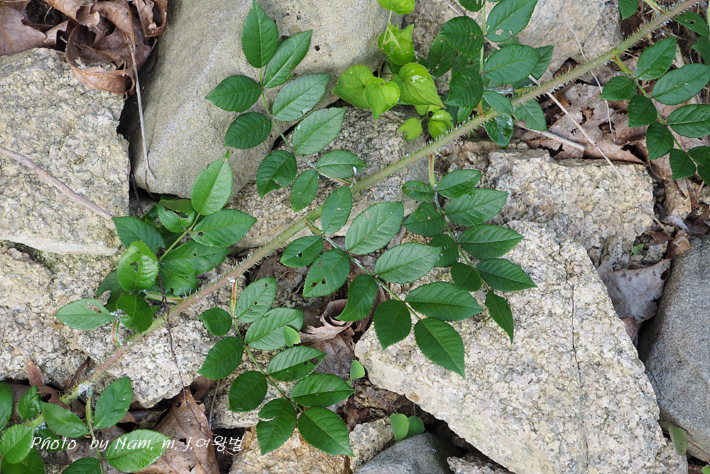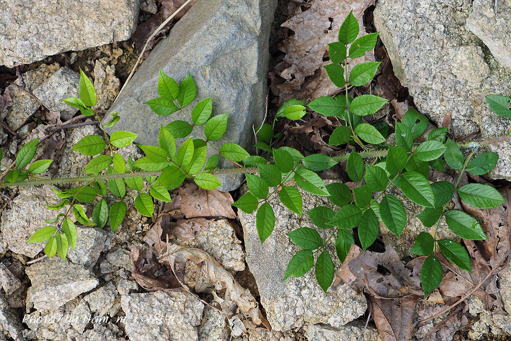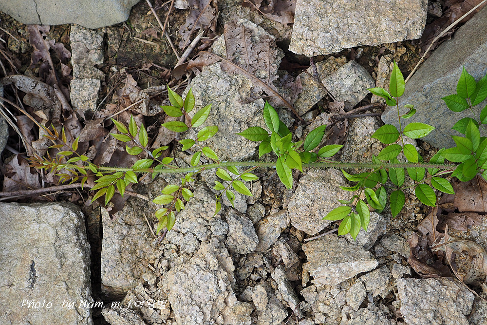 작년에 만난 숲속에서 자라는 녀석은 찔레처럼 위로 서서 자라서 기는 줄기를 확인할 수 없었다.