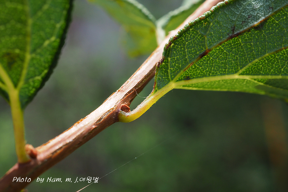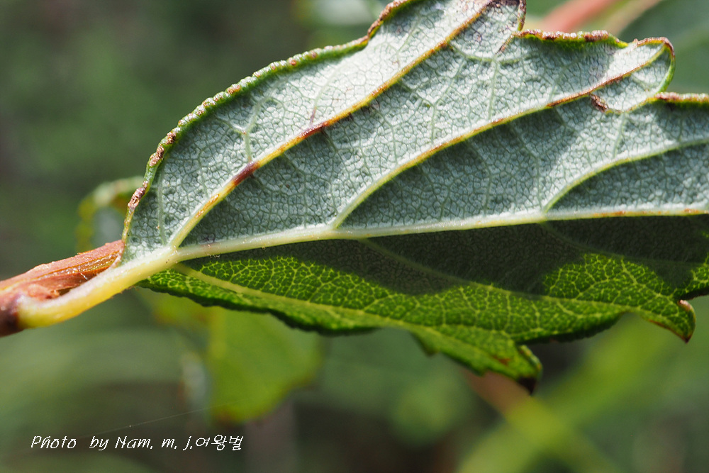엽병과 잎 뒷면의 옆맥에 털이 있다는데 사진에는 나타나지 않았다. 벌써 털이 탈락했을까?