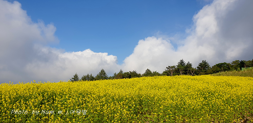 태백의 고랭지 채소밭에는 백겨자가 노랗게 꽃을 피워서 멋진 그림을 만들어 주고 있다.