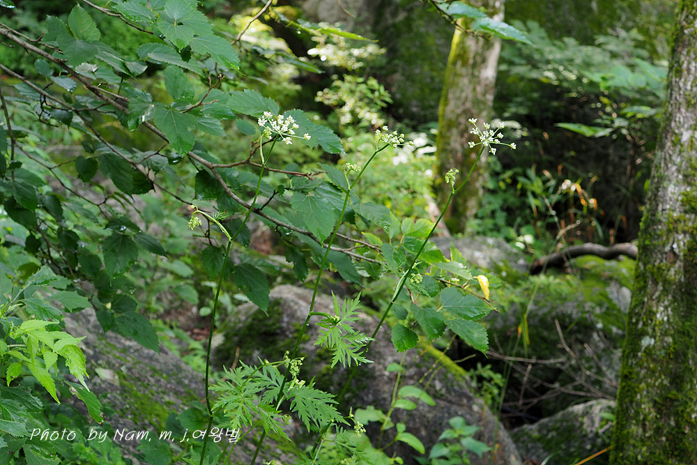잎이 가늘게 깊게 갈라져 있어서 그늘참나물로 분류되어 있는 녀석이다.