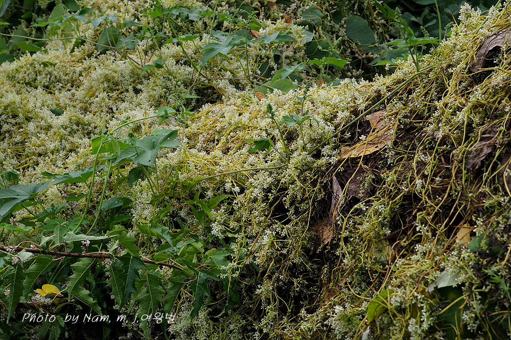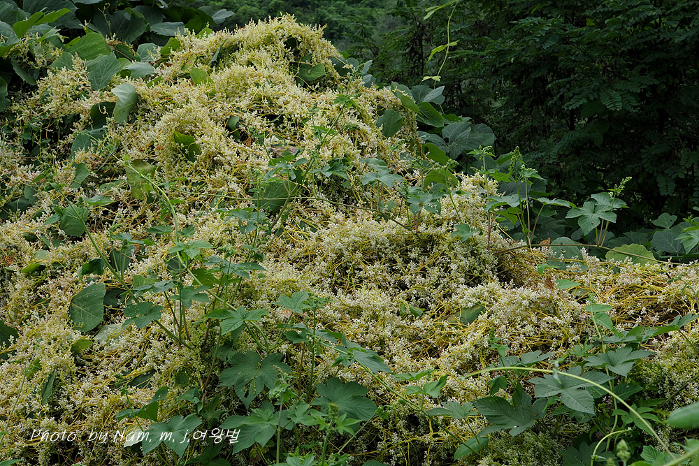 새삼이 나무와 풀들을 하얗게 덮고 있는 모습이 경이롭기까지 하다.