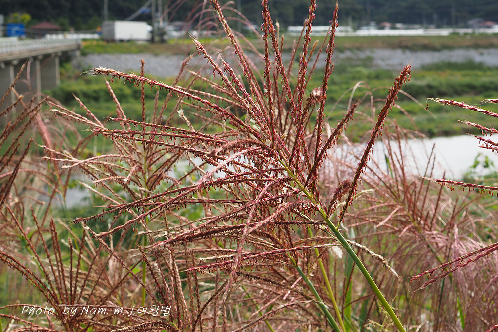 하천 둑방을 살피다가 유난히 붉은색을 띠고 있는 억새를 발견하고