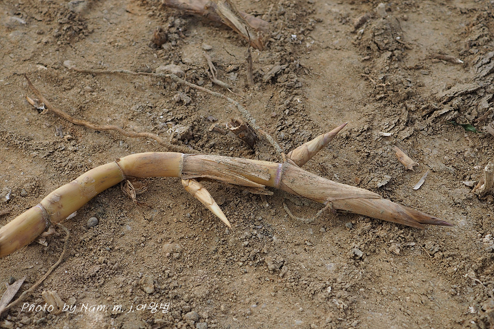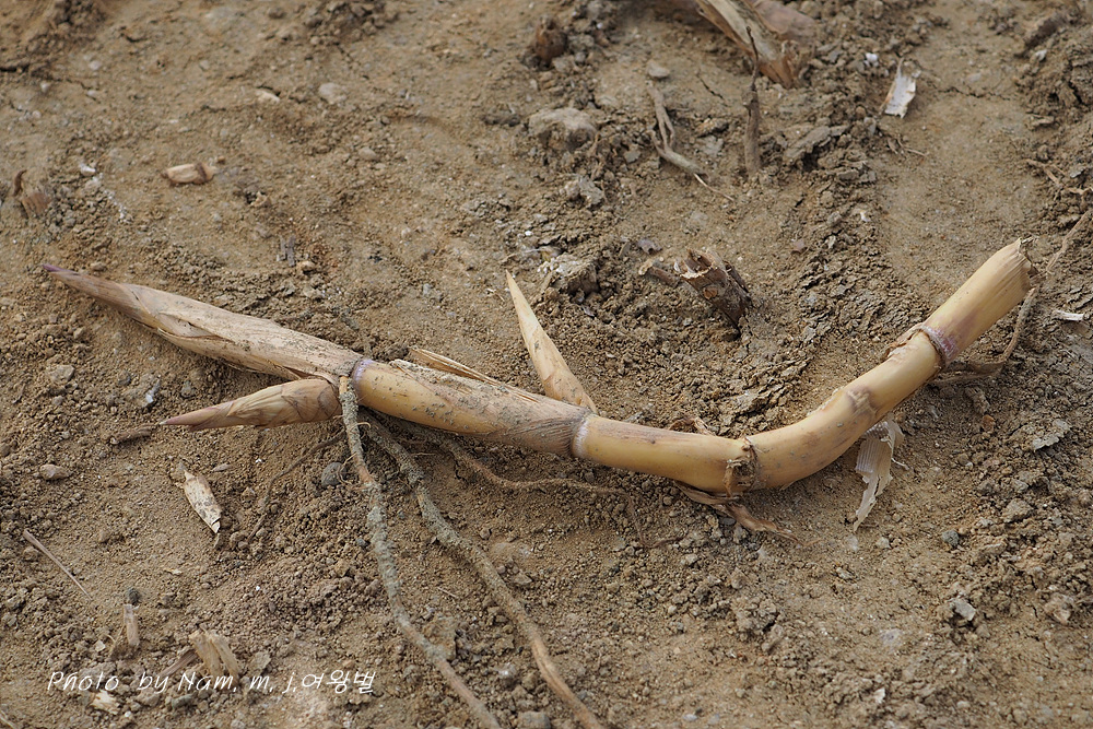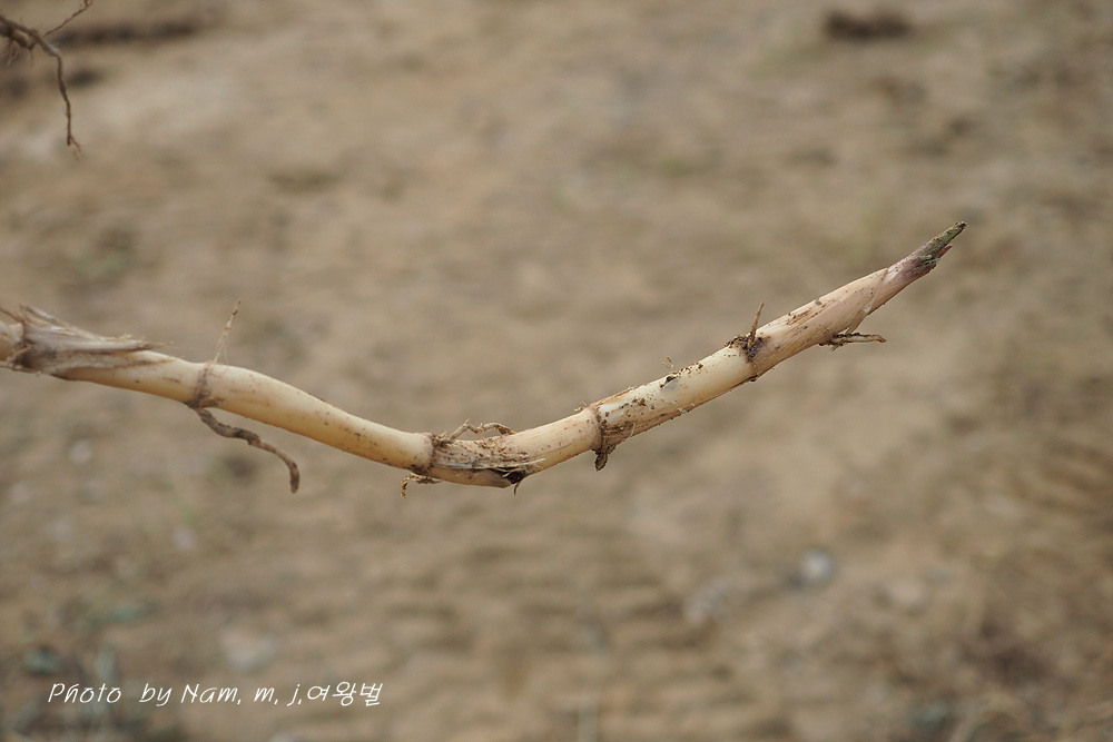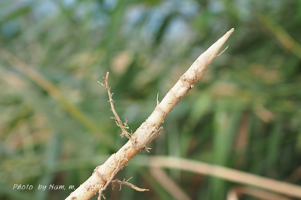 갈대 뿌리줄기는 땅속으로 기어가다가 새로은 개체를 올린다.