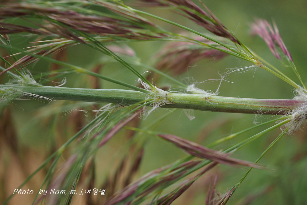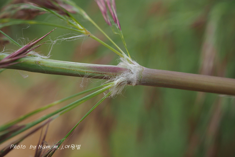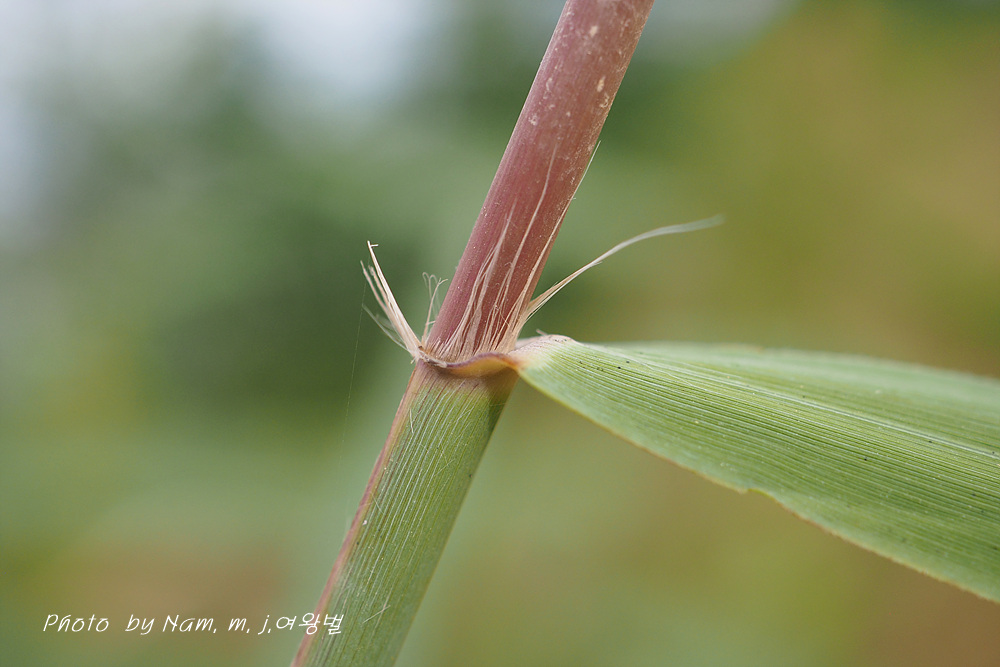 꽃가지 기부 화축에 털이 보인다. 달뿌리풀에도 이 털은 나타난다.