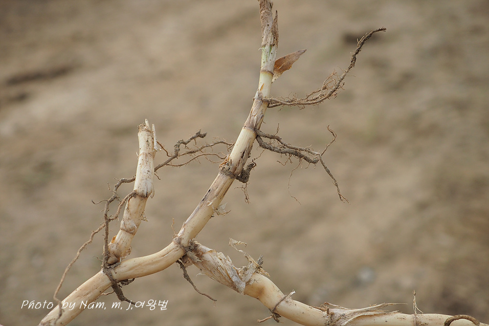 이렇게 갈대 뿌리가 나뒹굴고 있다.