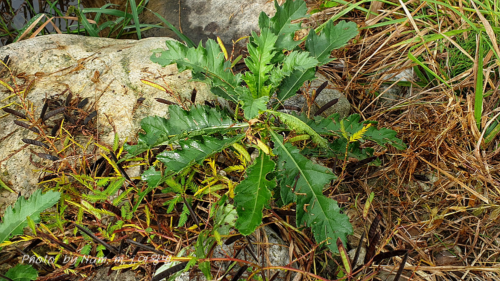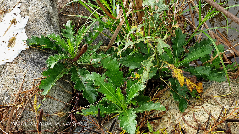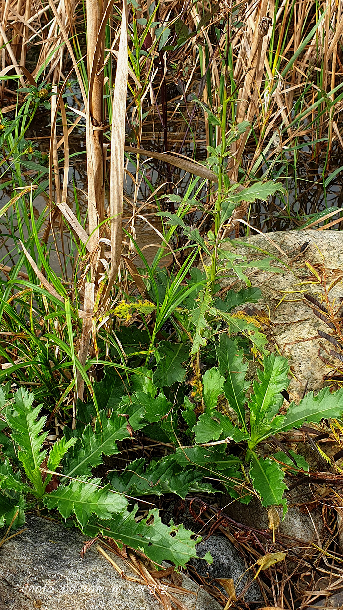 남쪽 수변천에서 갈대를 촬영하고 있는데 큰조뱅이 잎을 발견하고 깜짝 놀랐다.