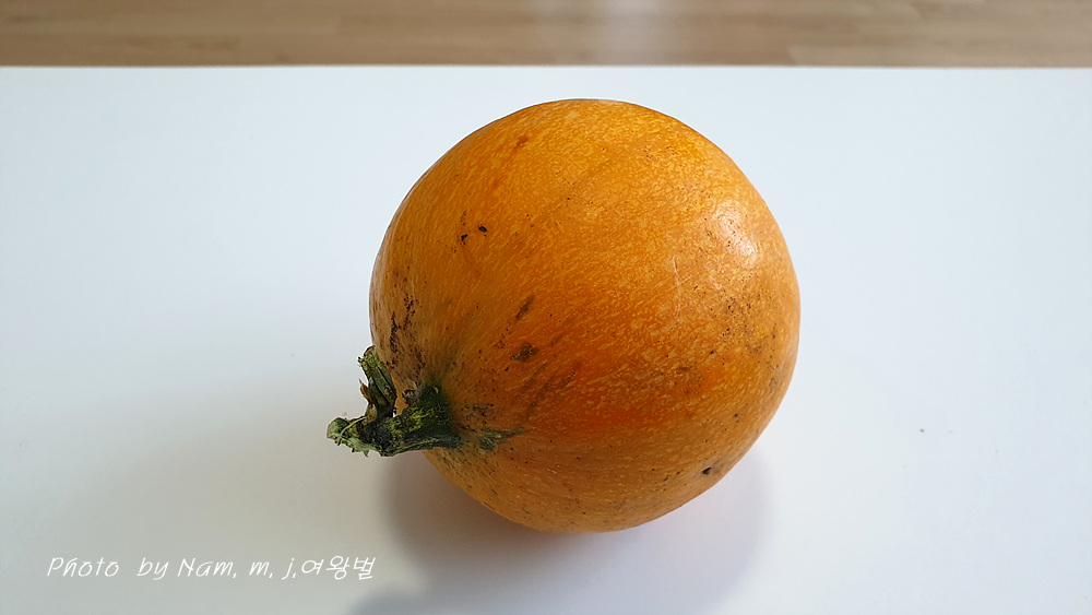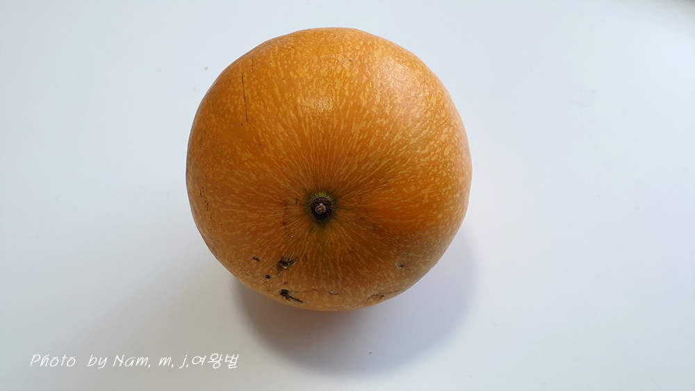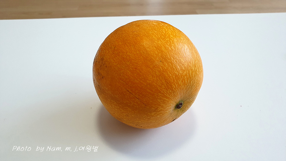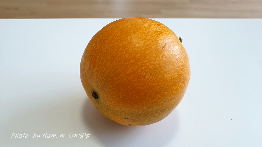 오렌지색에 가까운 붉은기운이 있는 노란색의 공모양