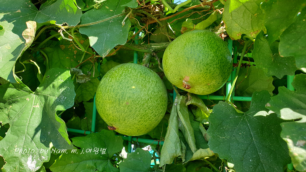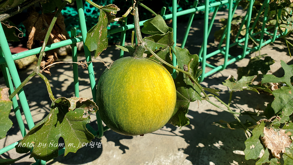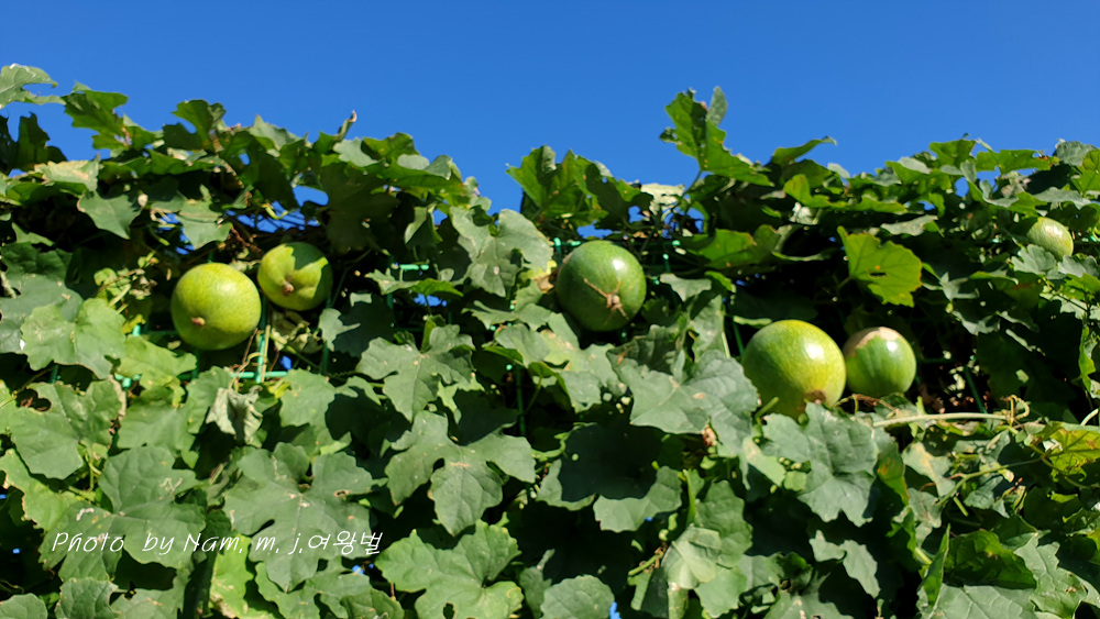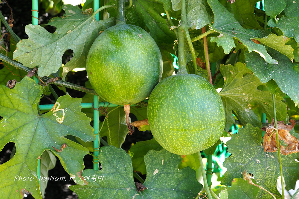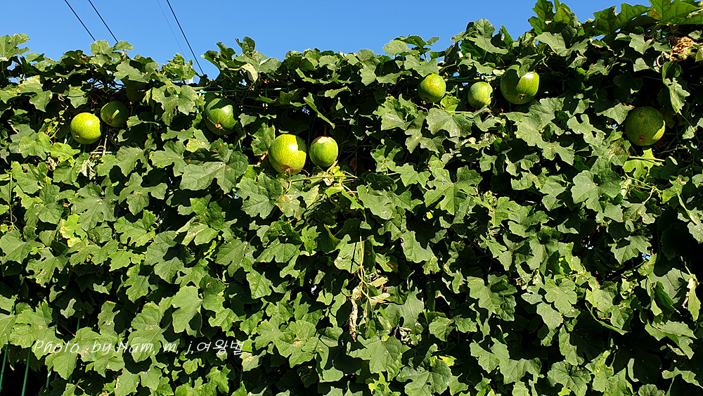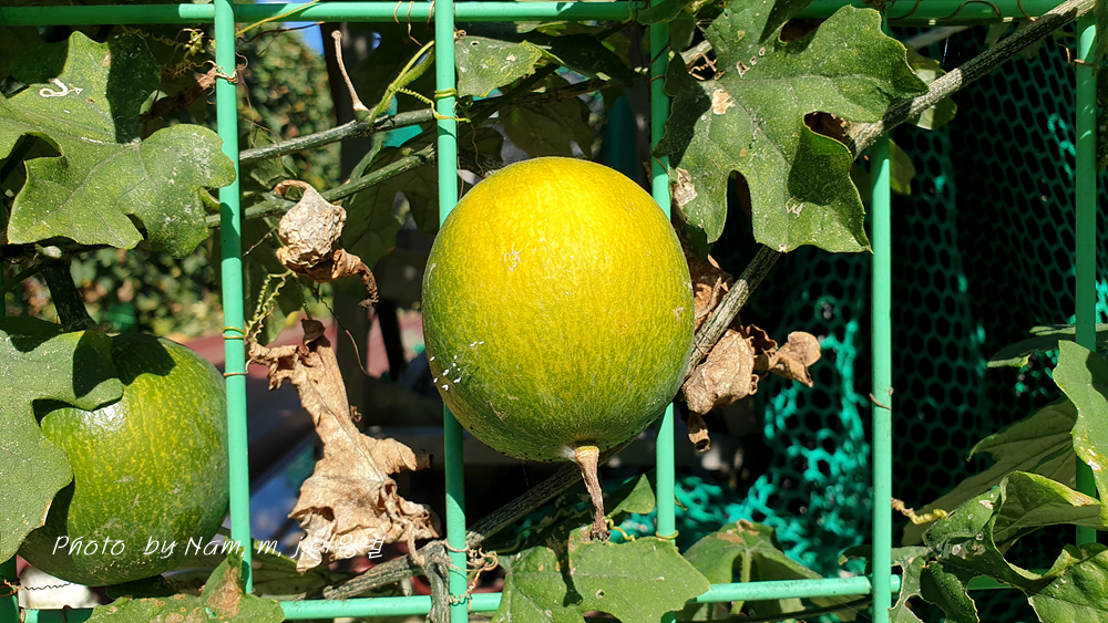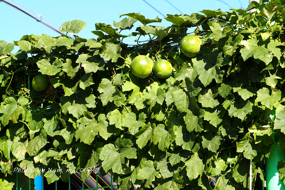 철망 울타리를 타고 풍성하게 잘 자란 덩굴에 열매가 잘 여물고 있었다.