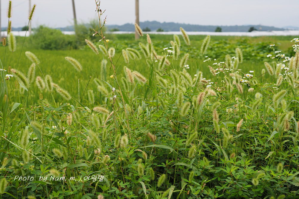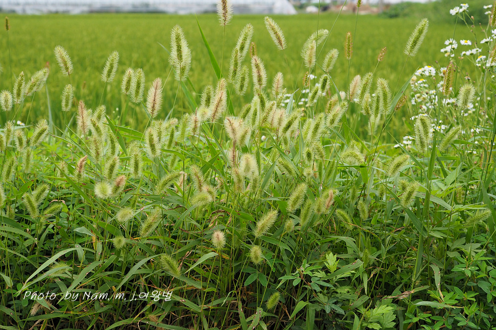 강아지풀 : 화서가 짧고 곧게 서며 개화기가 6~8월이다.