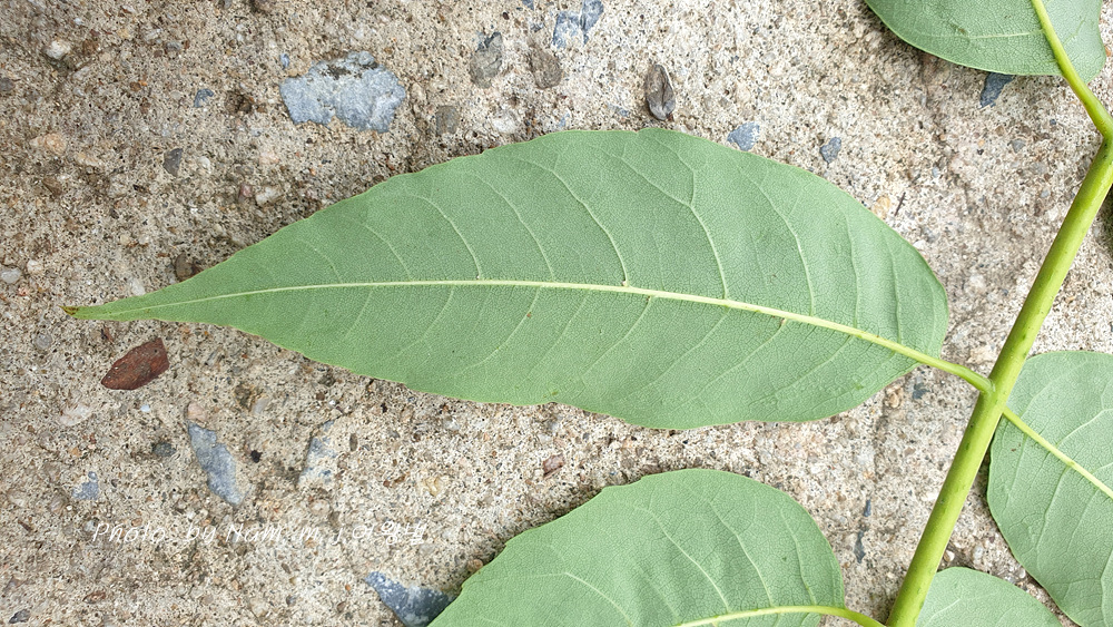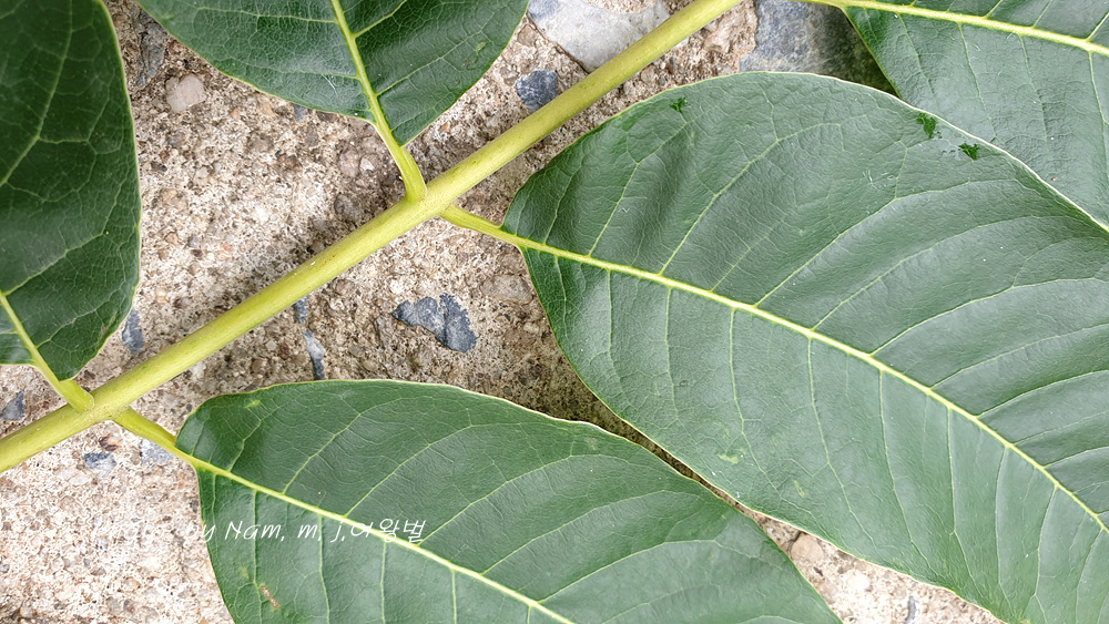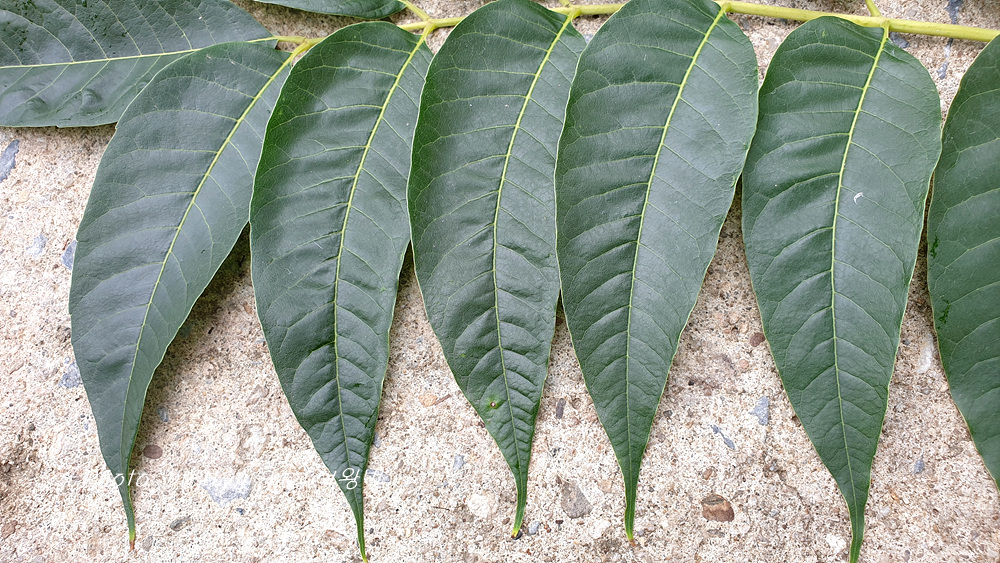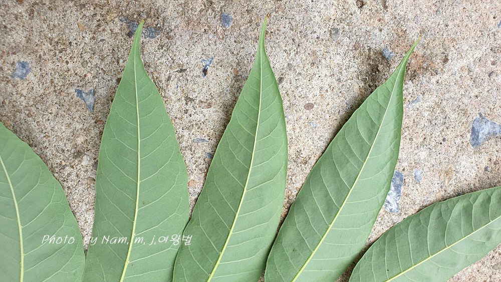가죽나무와 달리 짝수깃골잎이며 소엽수가 많고 기부에 선점이 없다.