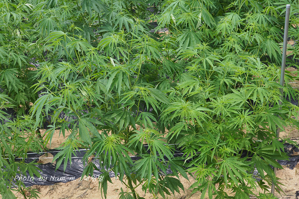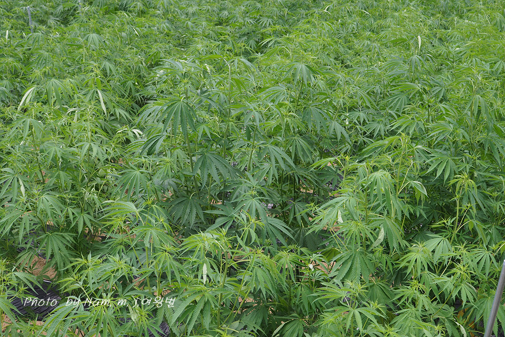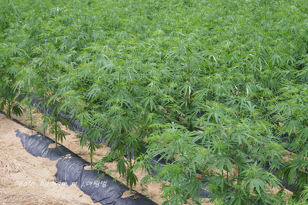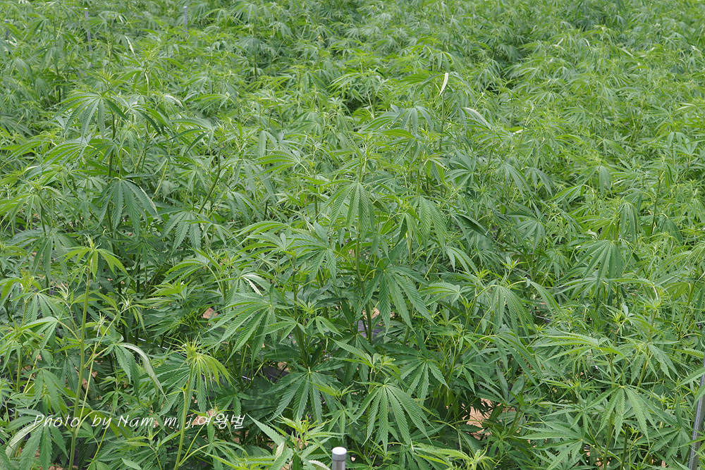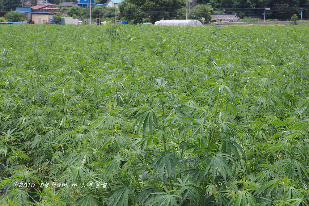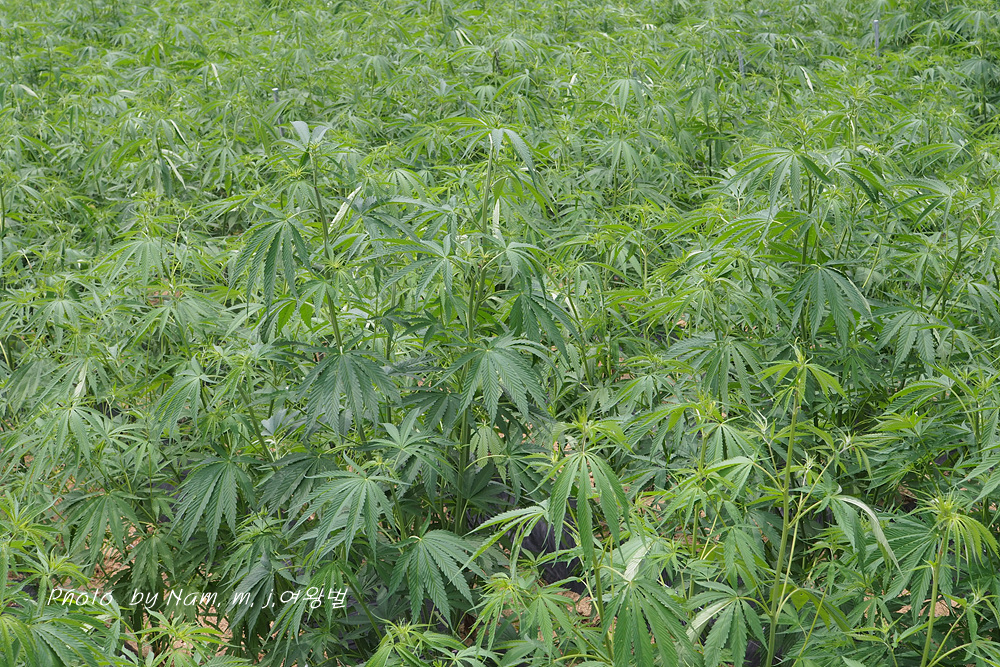 아직 한창 자라고 있는 삼밭에서 가까이 다가가지 못하고 몇 장 샷