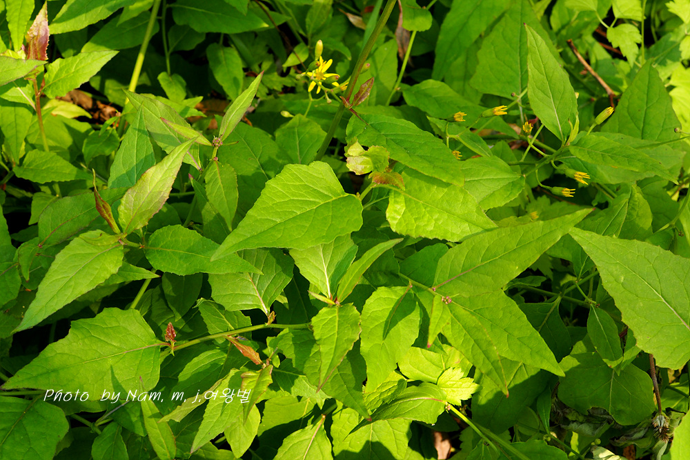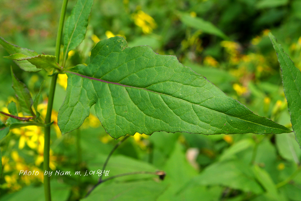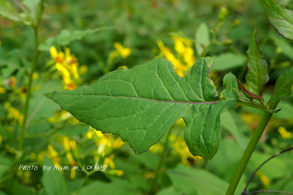 잎은 삼각상으로 국화금방망이 처럼 넓었고 꽃은 쑥방망이 정도로 제법 컸다.