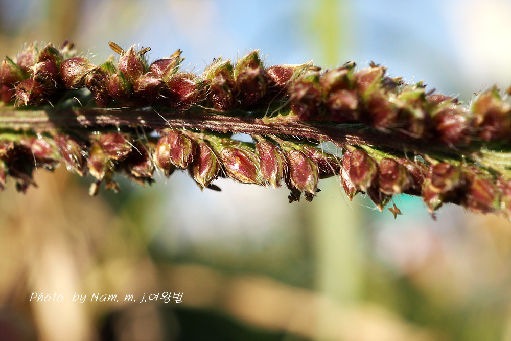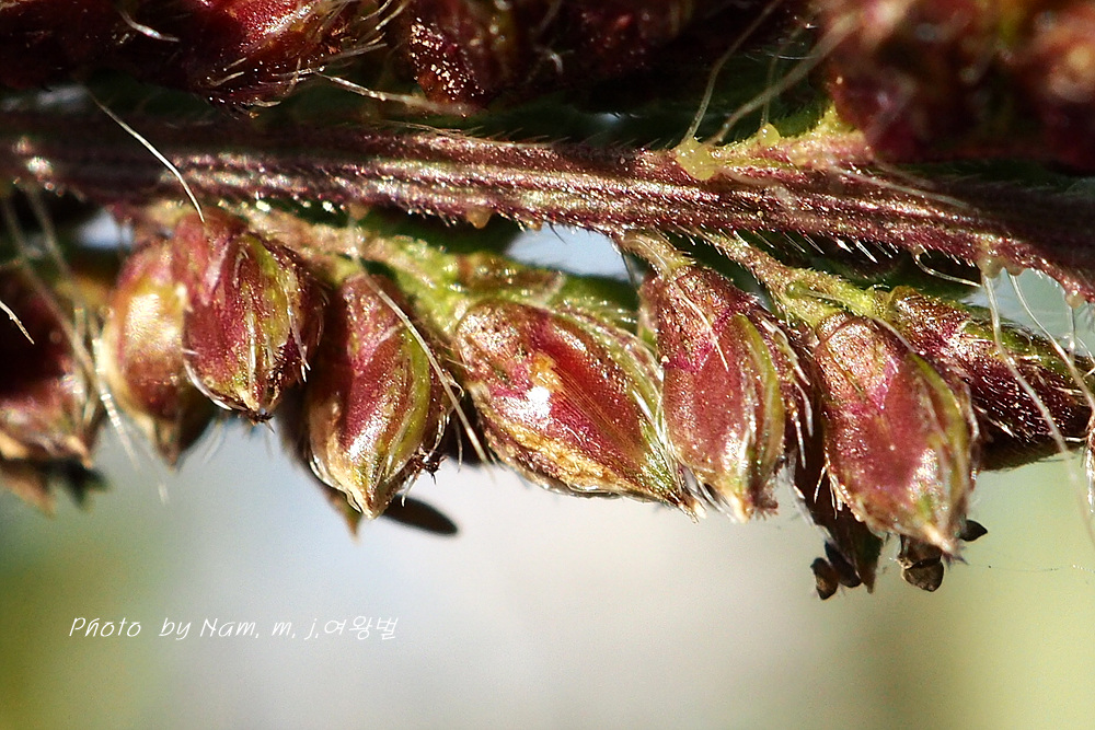 화서축이 거칠고 모서리를 따라 돌기털이 있고 까끌거린다.