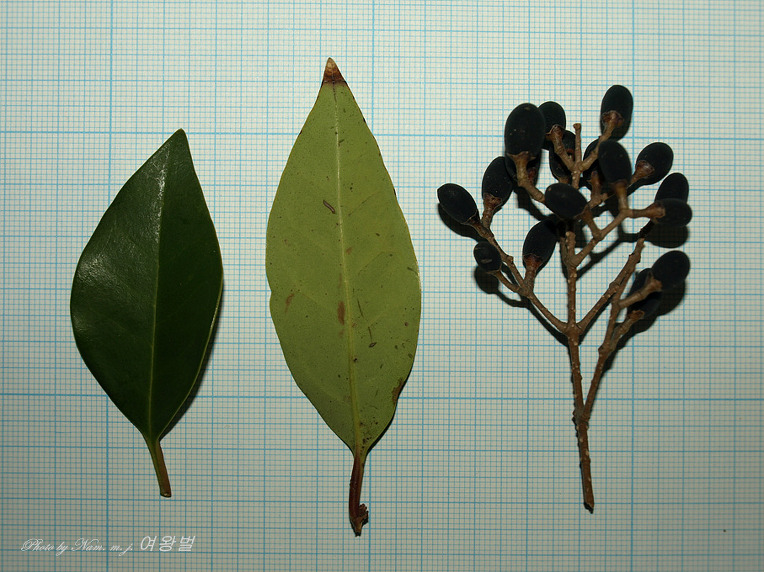 광나무 잎: 광택이 있고 잎맥이 희미하다![]() |