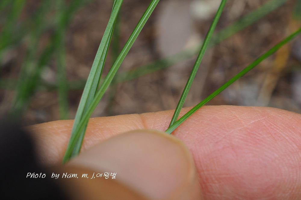 뿌리잎은 김의털처럼 실처럼 가늘지만 줄기 잎이 두드러지게 넓어지는(2~4mm) 특징이 있다.