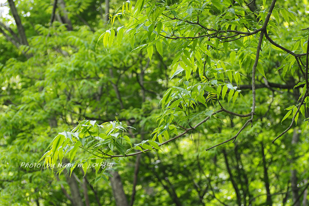 황벽나무 초록 잎새가 아주 싱그럽다.
