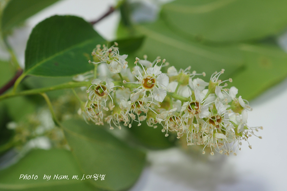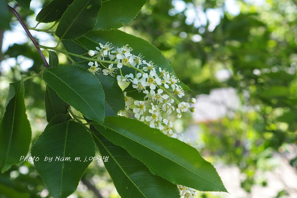 잎 표면에 광택이 많고 화서가 귀룽나무 비슷하다.