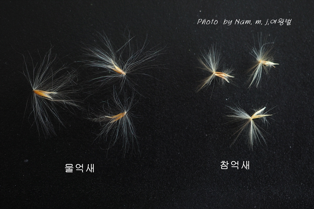 물억새는 소수기반의 털이 소수 길이의 2~3배 길리로 매우 길고 까락이 없다.