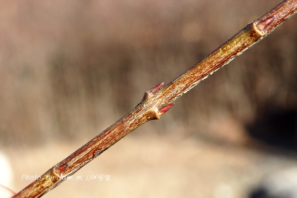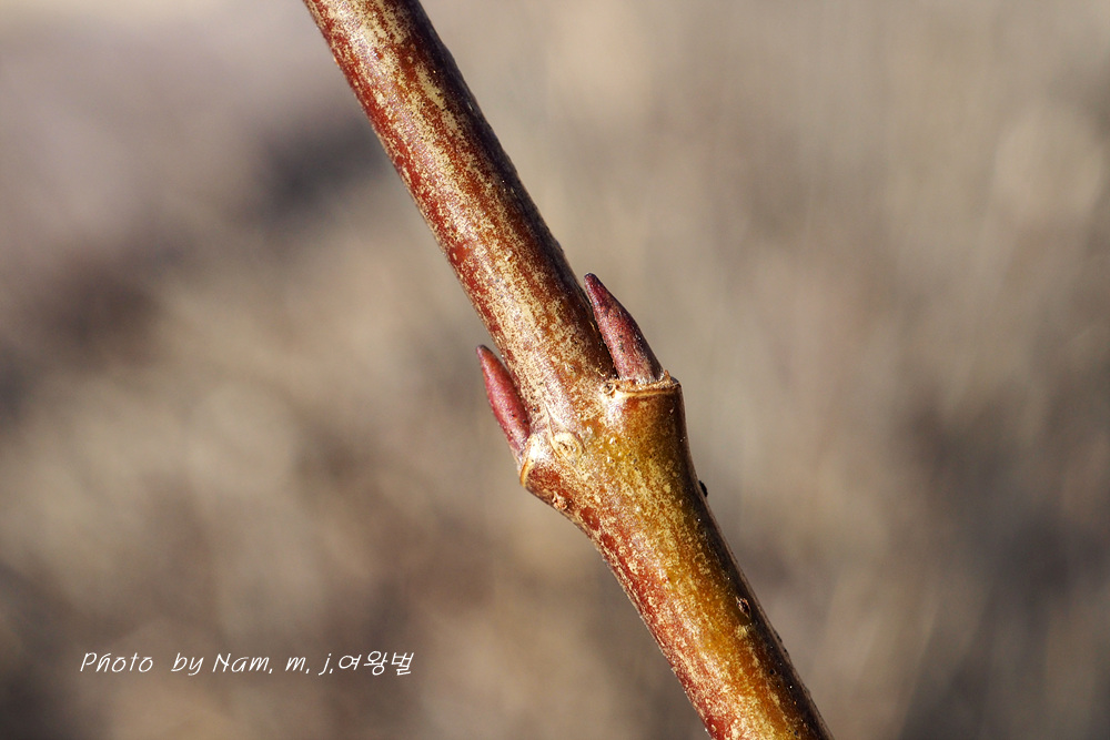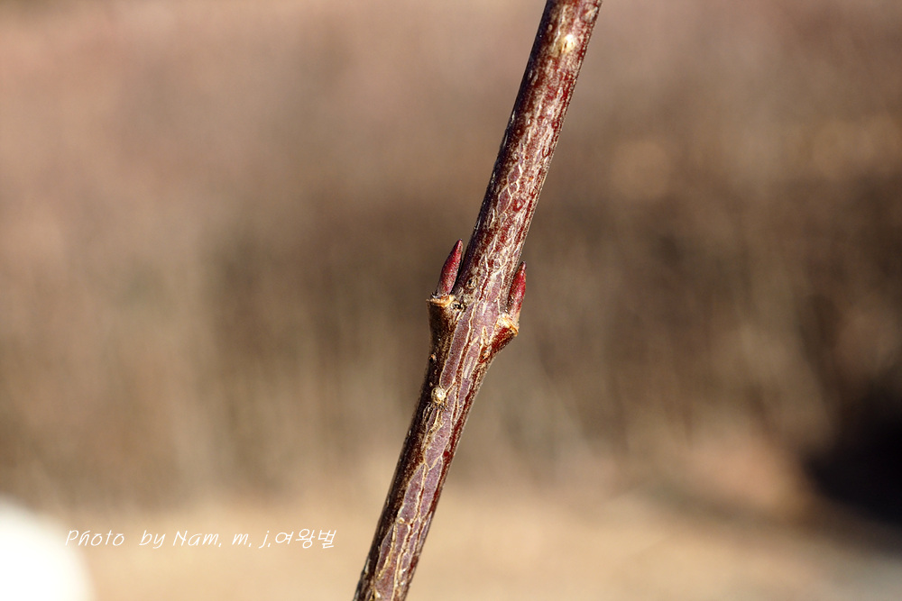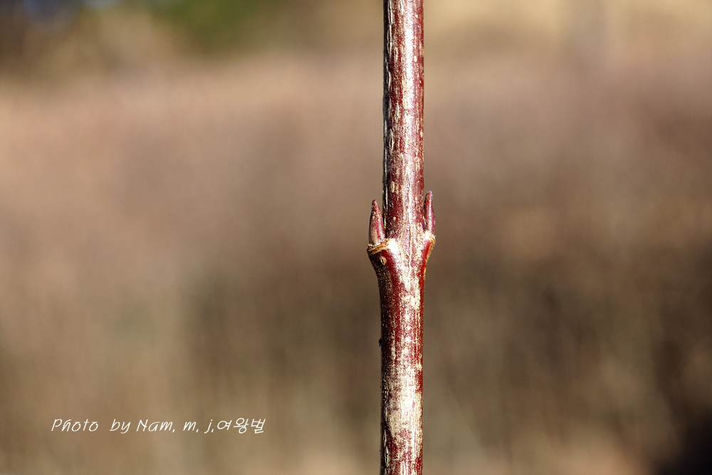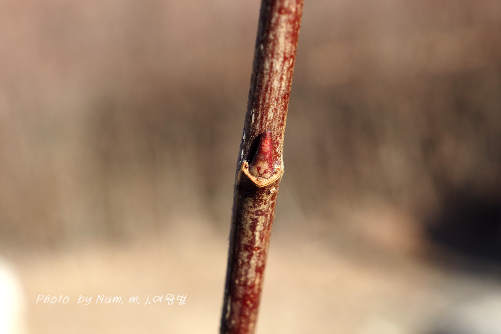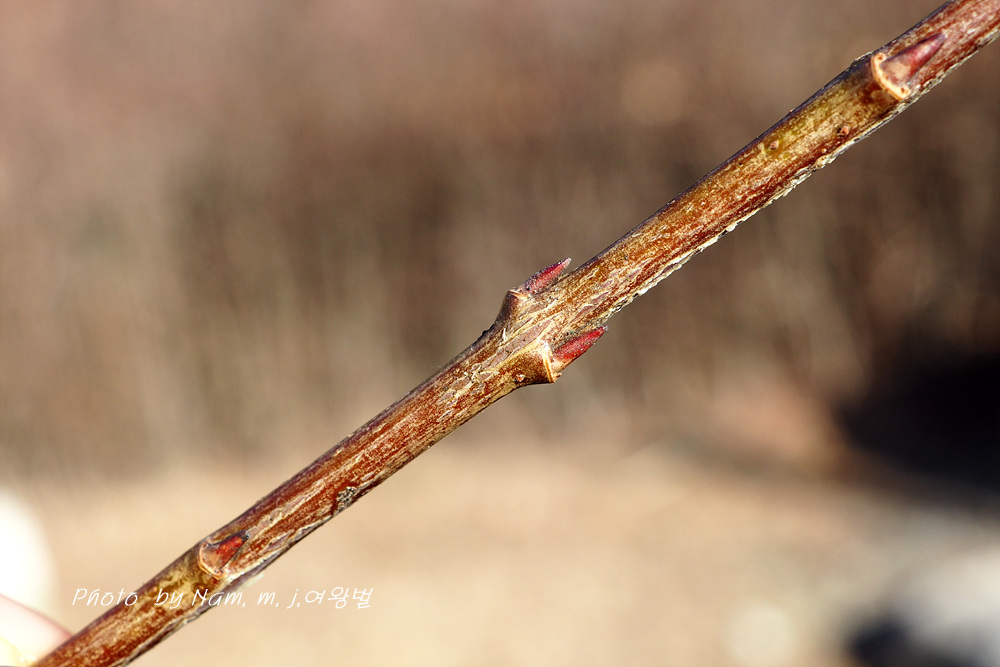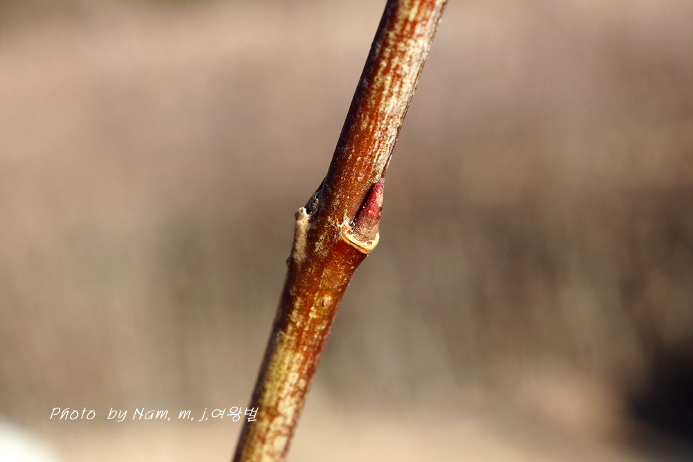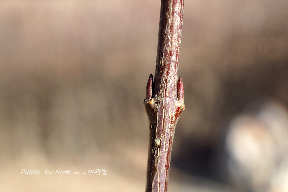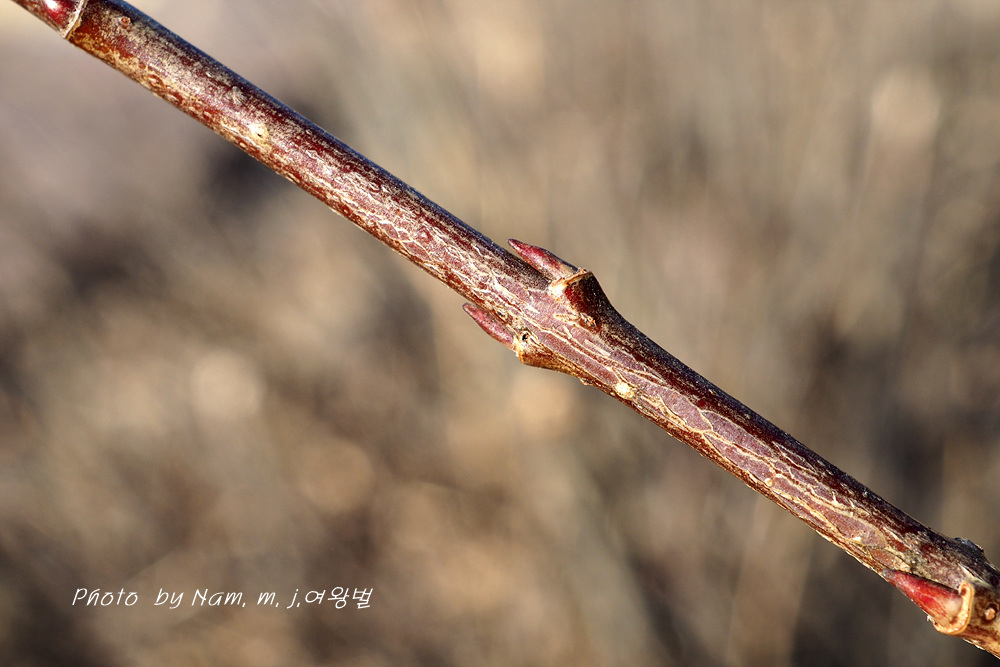 줄기 아래 부분의 잎눈고 가지 끝부분 꽃눈 동아가 어긋나기로 달리기도 한다.