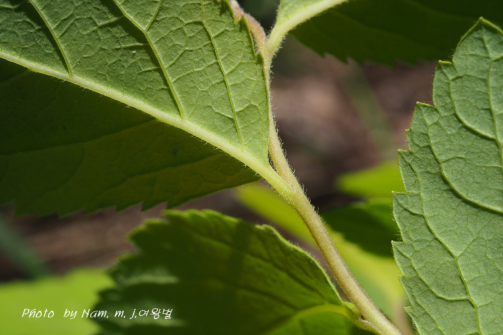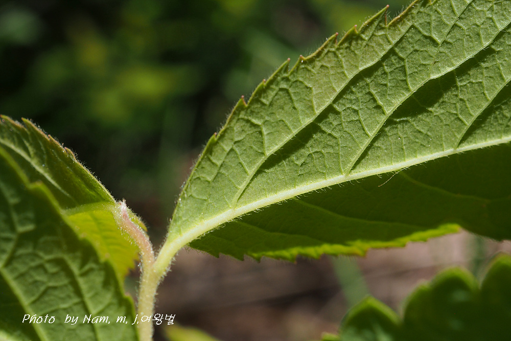 잎 뒷면의 맥, 어린가지에 털이 많다