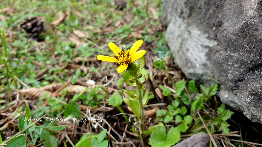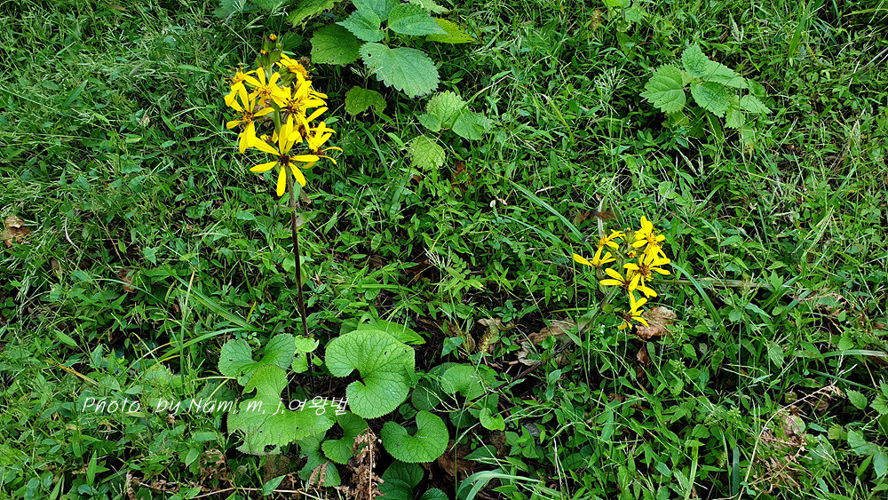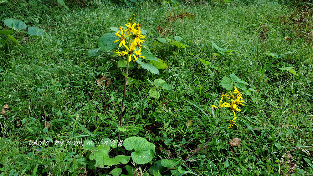 산사 주차장 주변을 뒤지는데 볕이 잘 드는 곳에 아직도 곰취가 꽃을 피우고 있다.