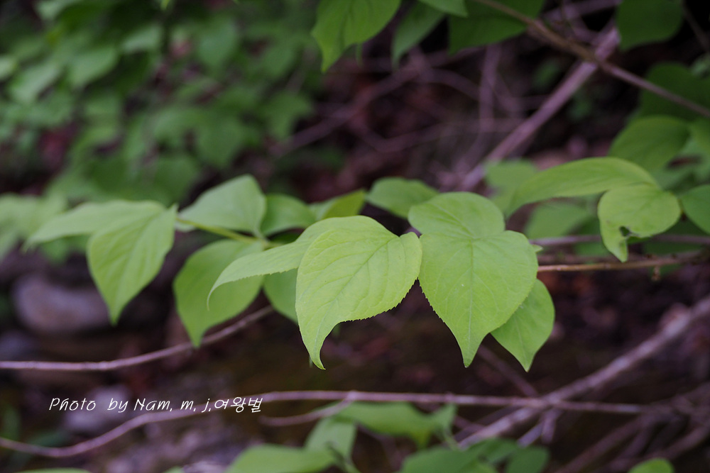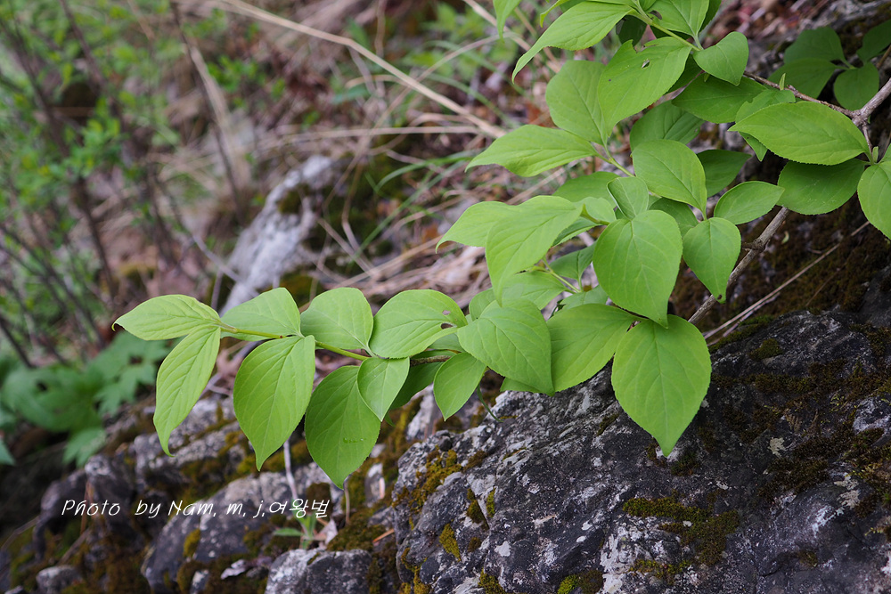 석회암 지역의 이 녀석은 엽형이 광난형으로 끝이 급하게 뾰족하고 밑이 둥글거나 넓은 쐐기형이지만