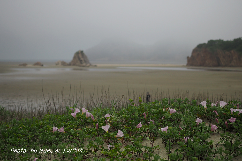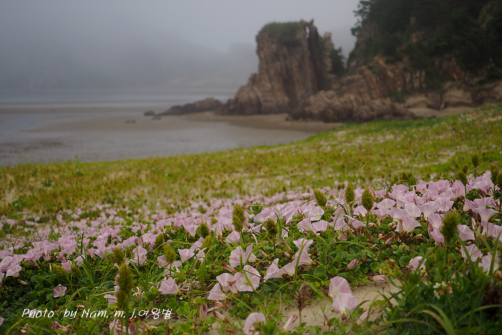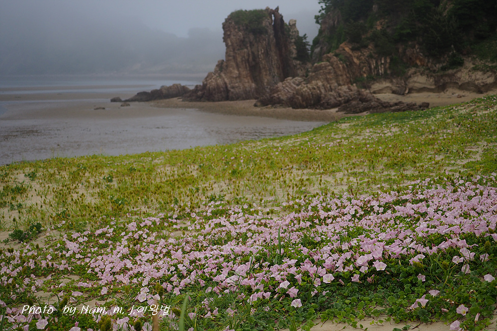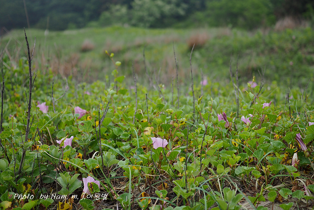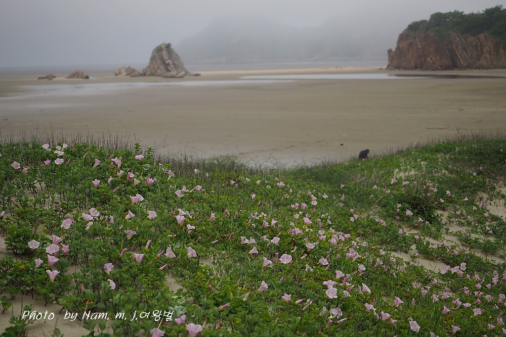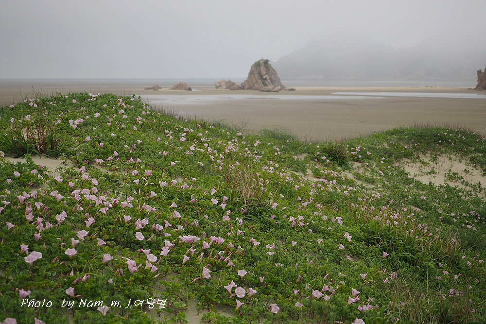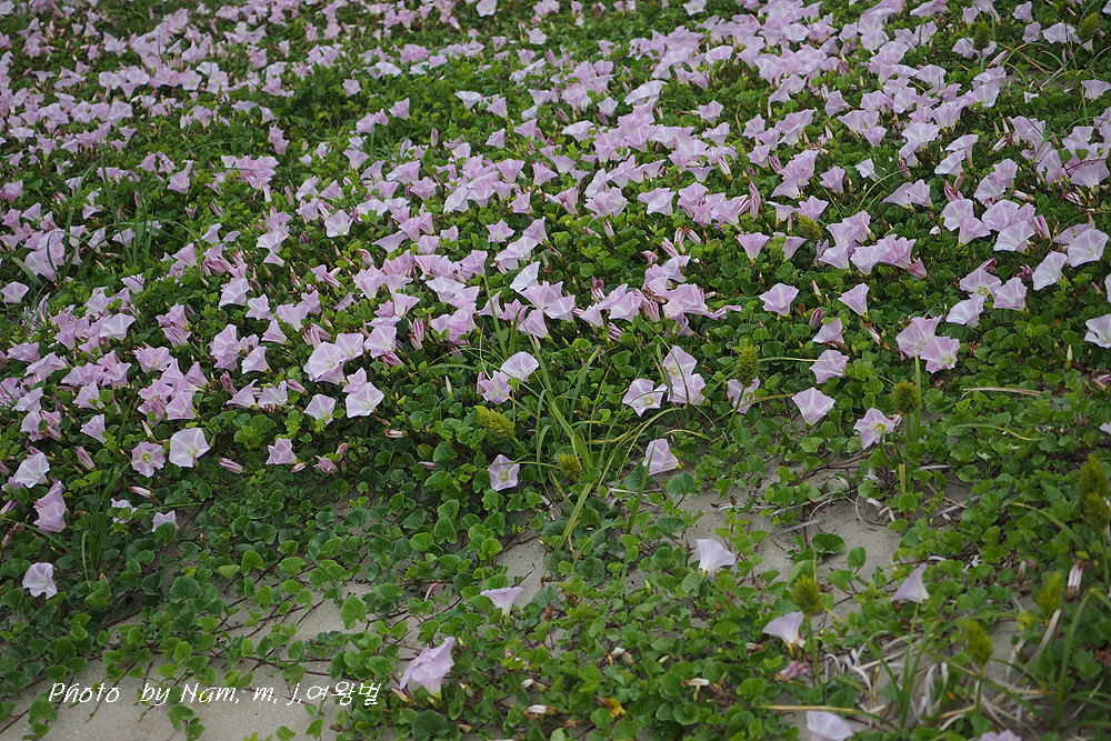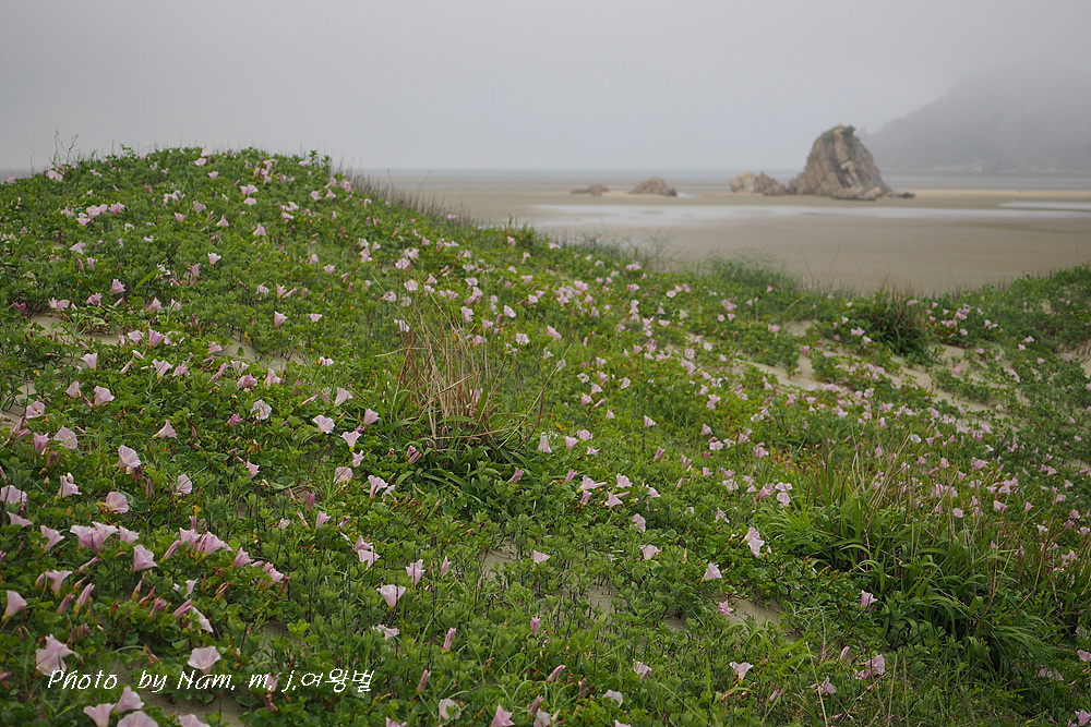 갯메꽃이 점령하고 있던 바닷물이 빠진 해안 구릉에서