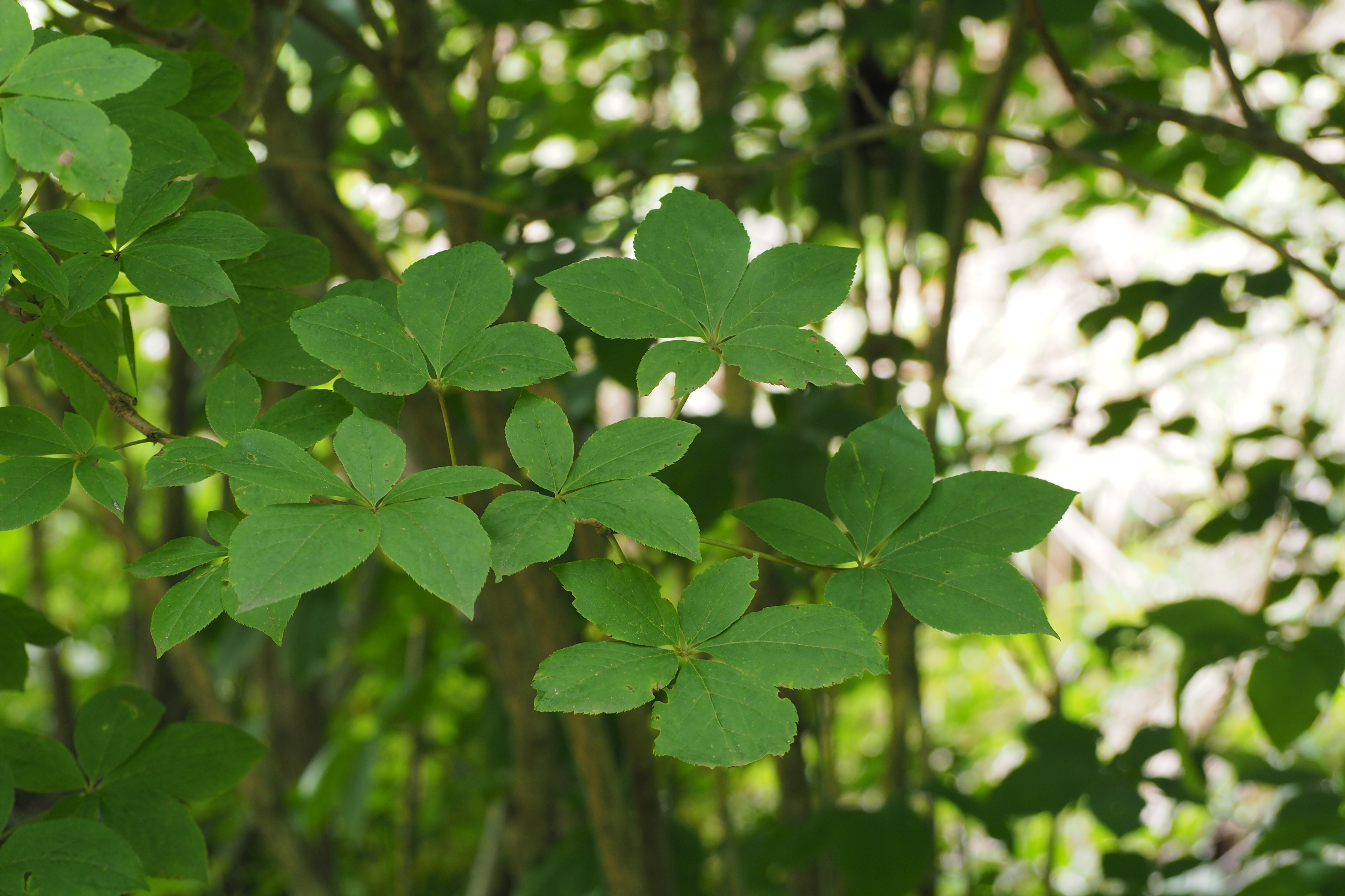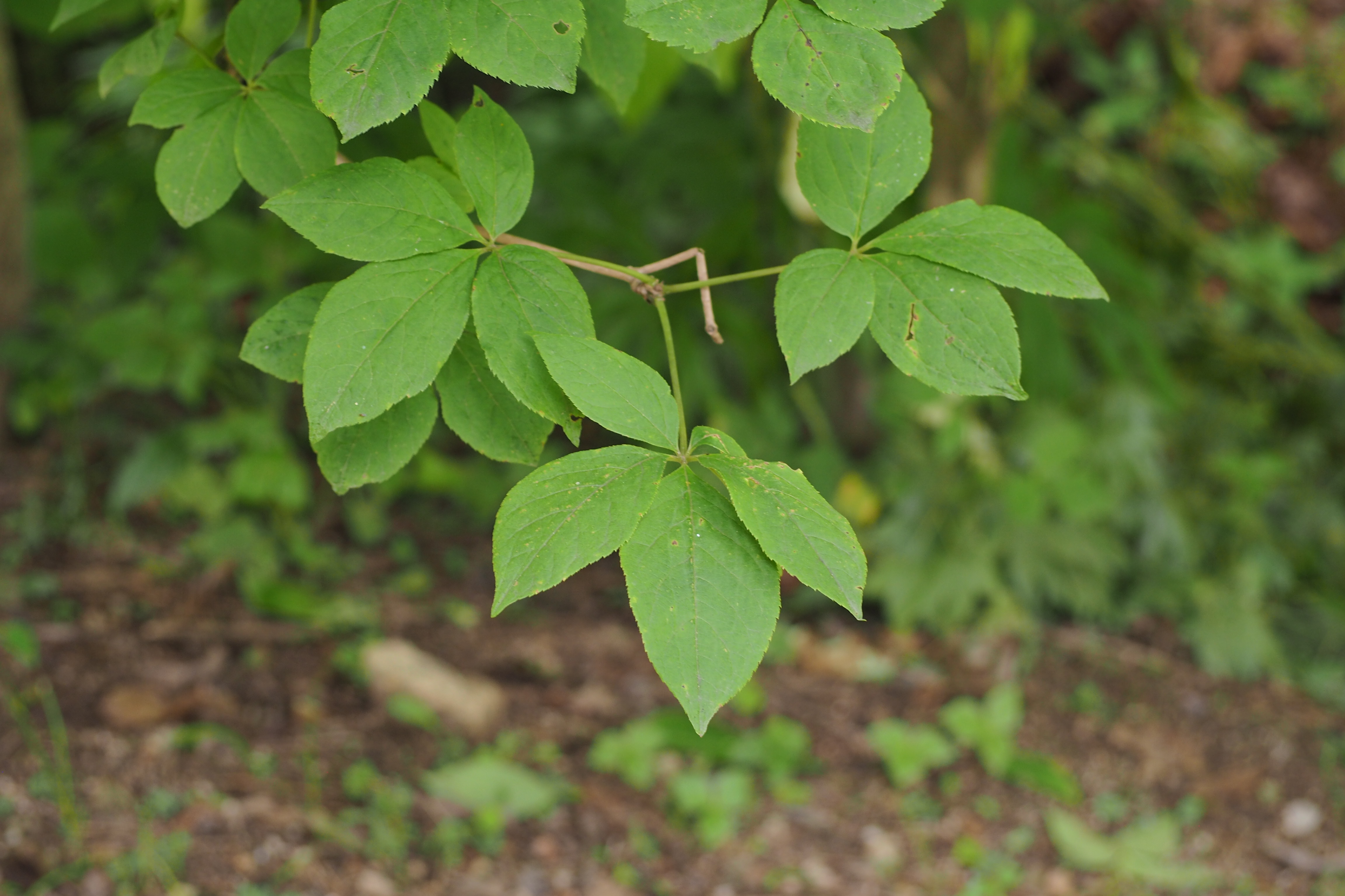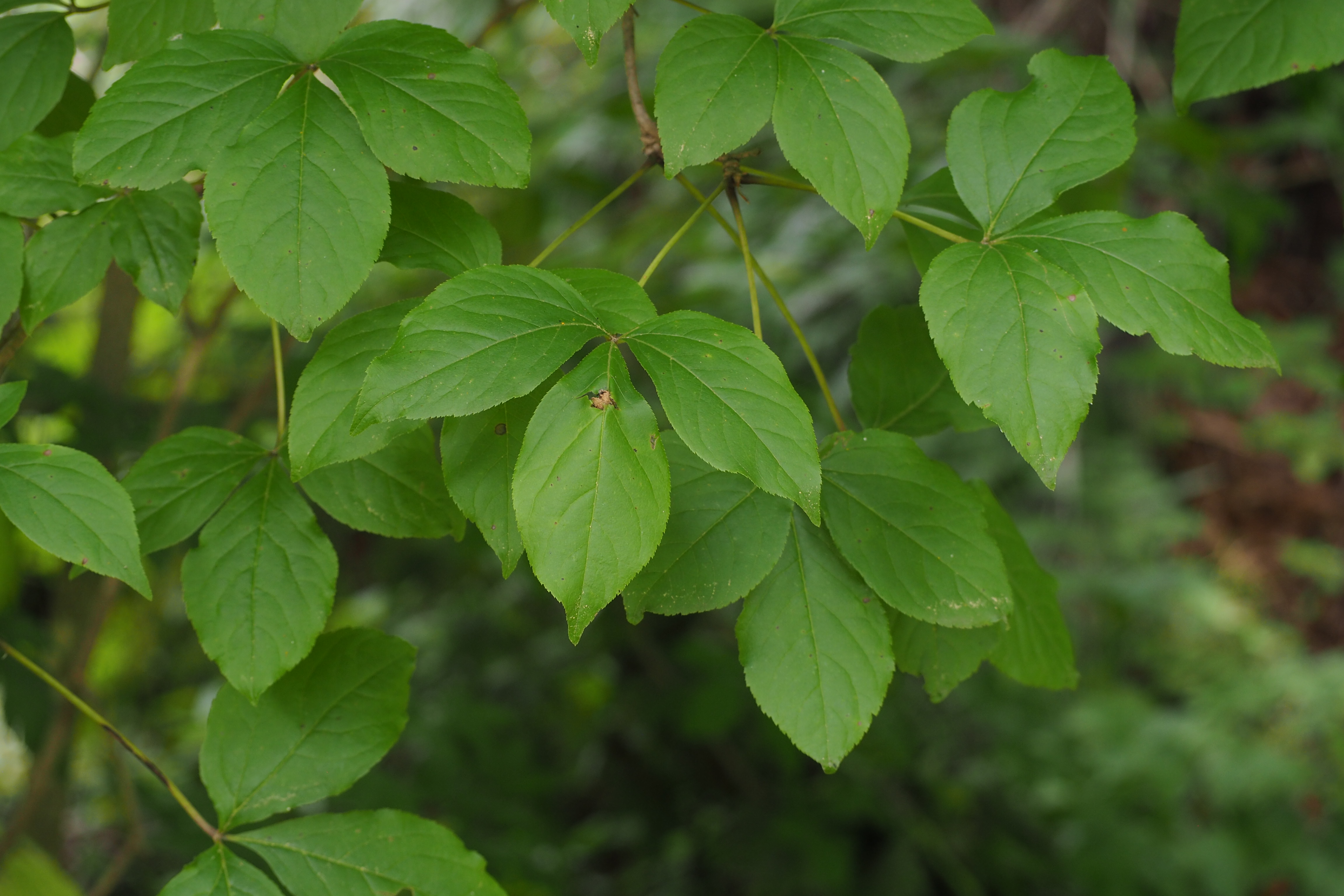 잎은 3~5출엽까지 주로 3출엽이 많이 나타난다. (2021. 7. 19. 강원도)