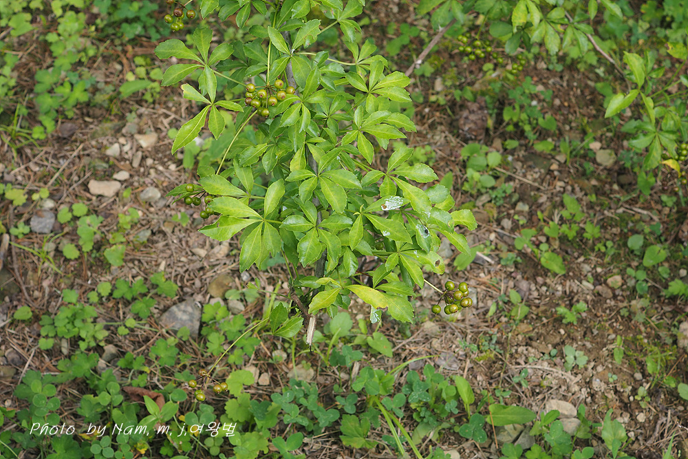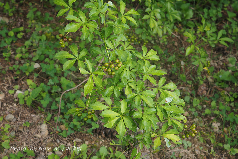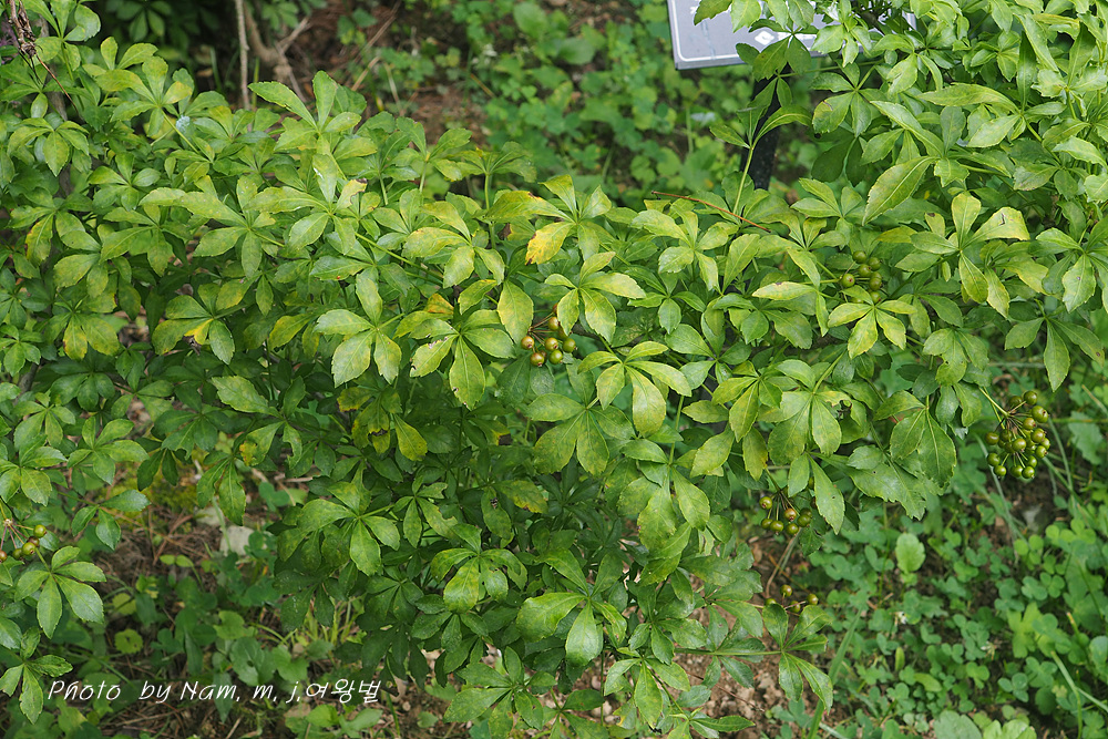 오갈피나무에 비해 작은잎의 자루가 없고 산형꽃차례 한 개가 짧은가지 끝에 달리는 점에서 구분된다.
