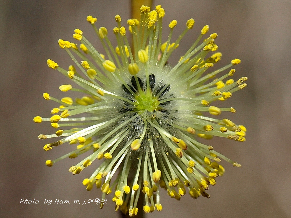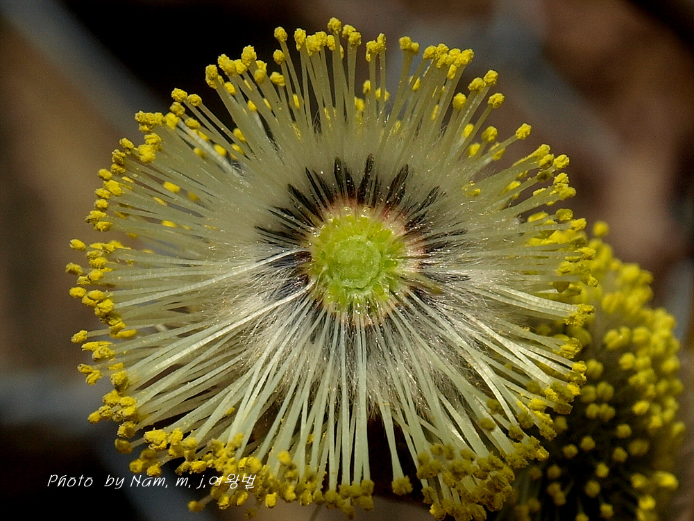 분버들 암꽃-자방에 털이 없고 각이 지기도 하며, 암술은 2개로 갈라지고 암술대가 길다![]() |
