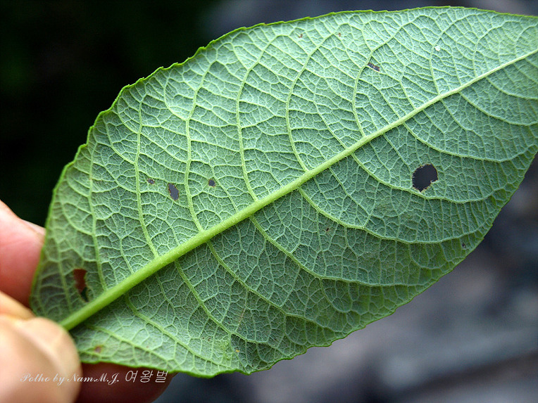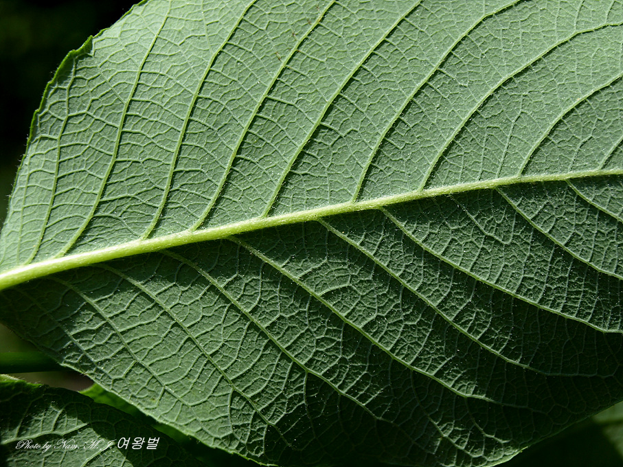 잎 표면에 잔주름이 많이 지고 잎 뒷면 맥이 뚜렷하게 돌출하며 잔털이 밀생한다