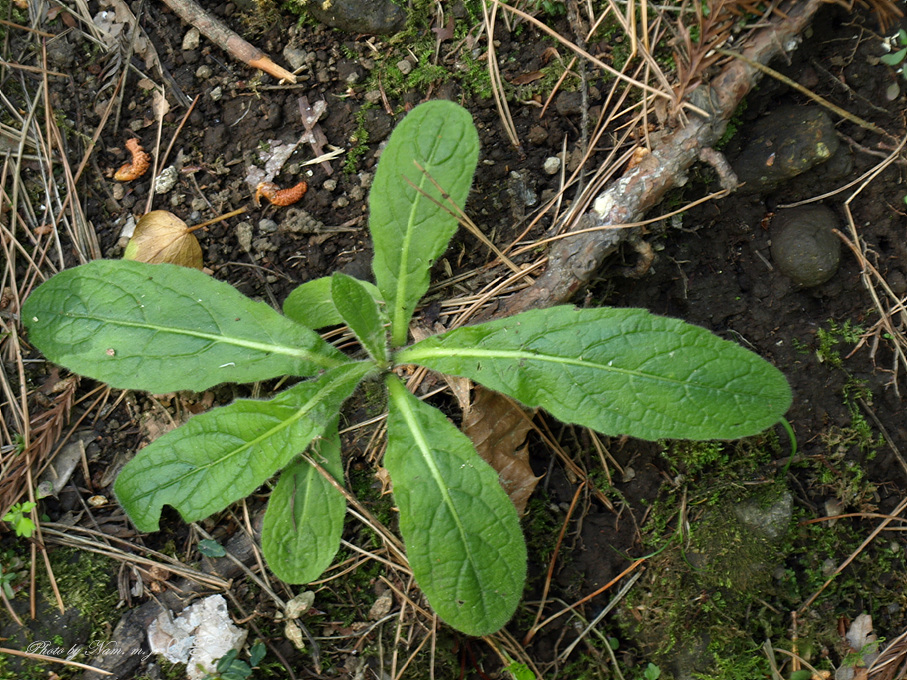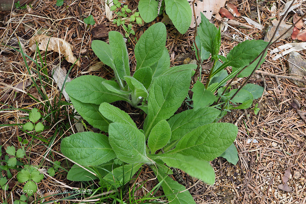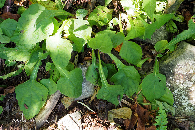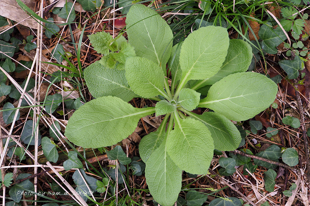 보통 2년차에 줄기가 자라서 꽃을 피우지만 더러 줄기를 올리지 못하고 로제트 상태로 버티고 있는 녀석은 전혀 다른 모습을 하고 있어서 헷갈리게 한다