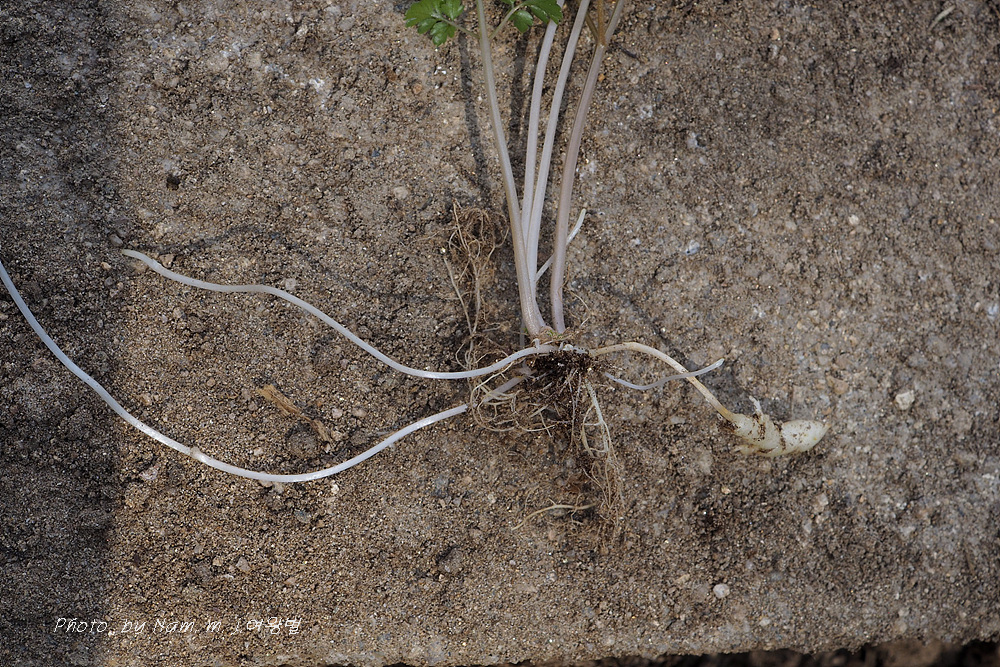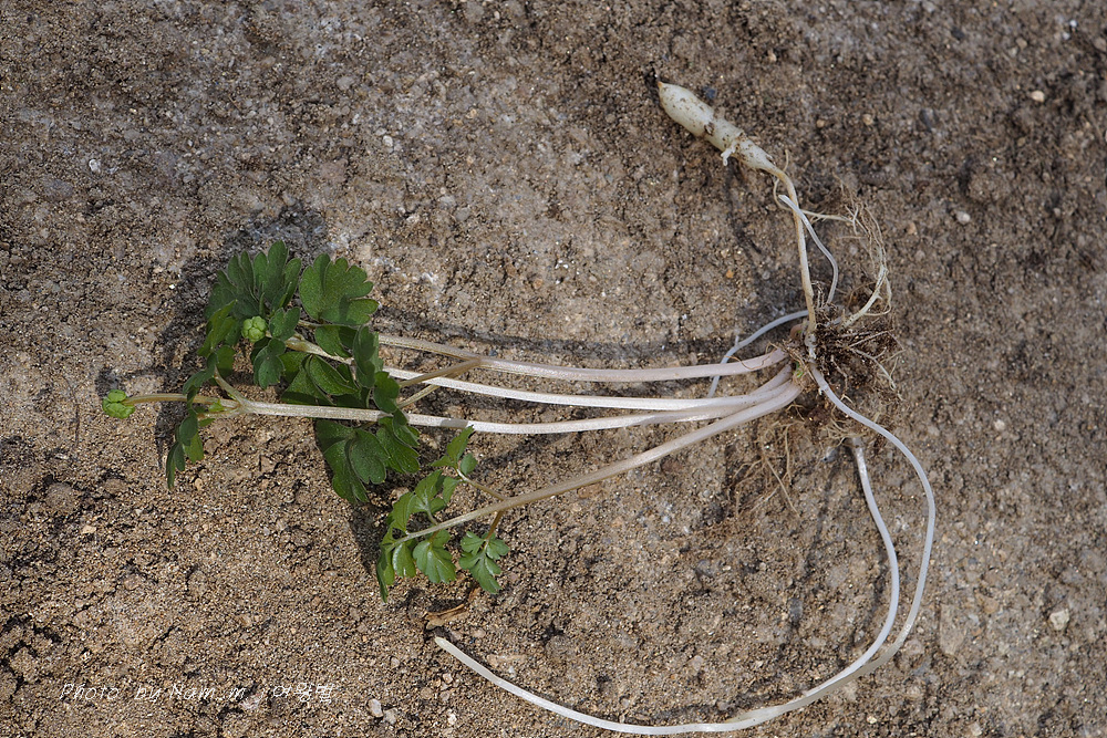이른 봄에 자라서 꽃을 피우는 현호색속 녀석들 처럼 괴근을 가지고 있다.