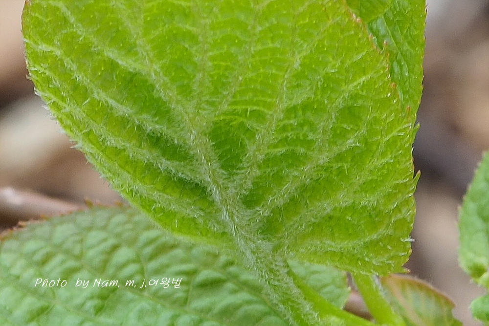 어린 줄기 잎자루 잎 뒷면에 까칠한 털이 있다.