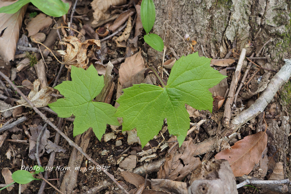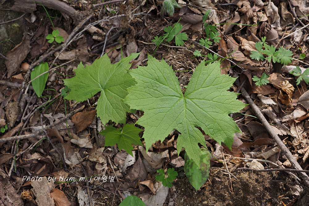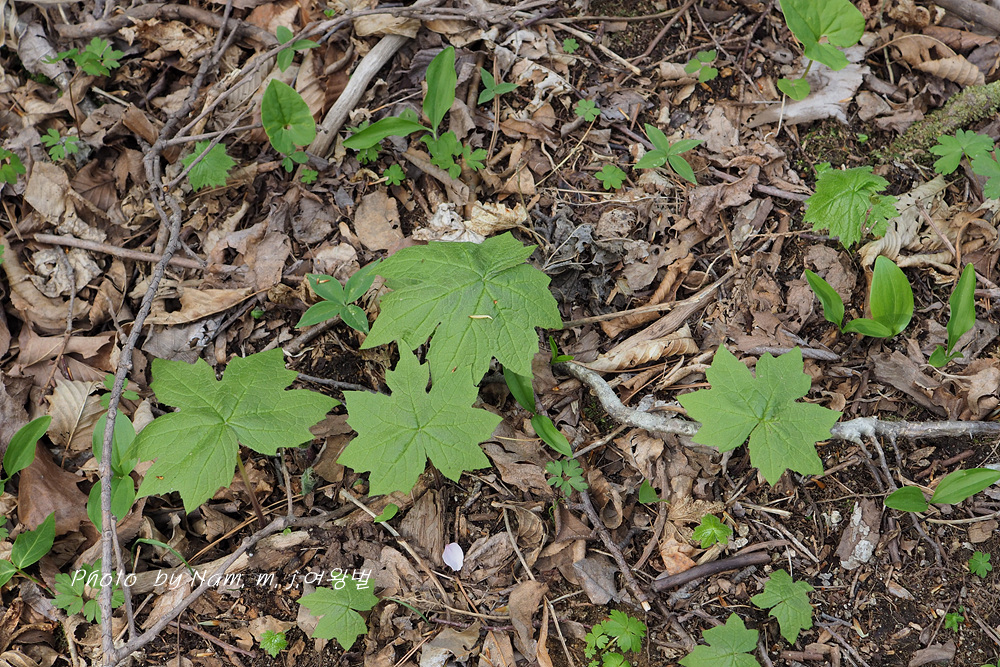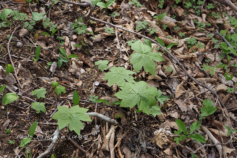 북쪽 산의 봄 계곡은 큰 잎을 가진 초본류들이 비슷비슷한 모습을 하고 있다.
