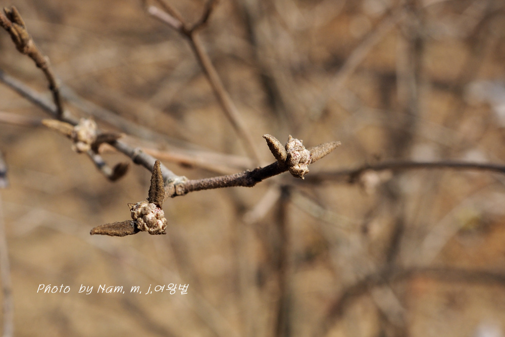잎눈은 나출되어 있고 꽃눈은 인편에 싸여 있다.