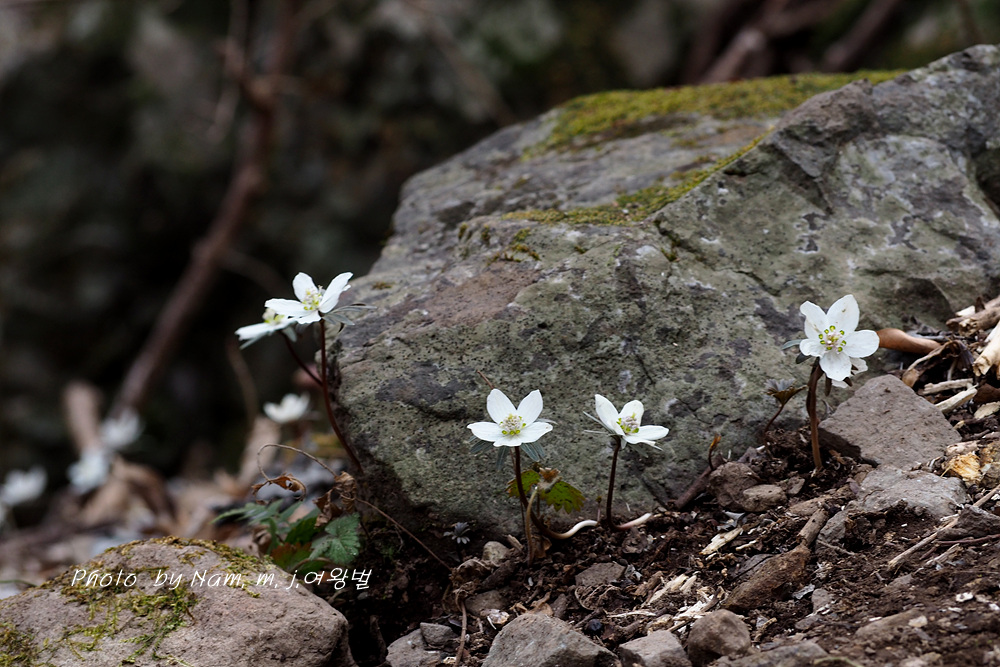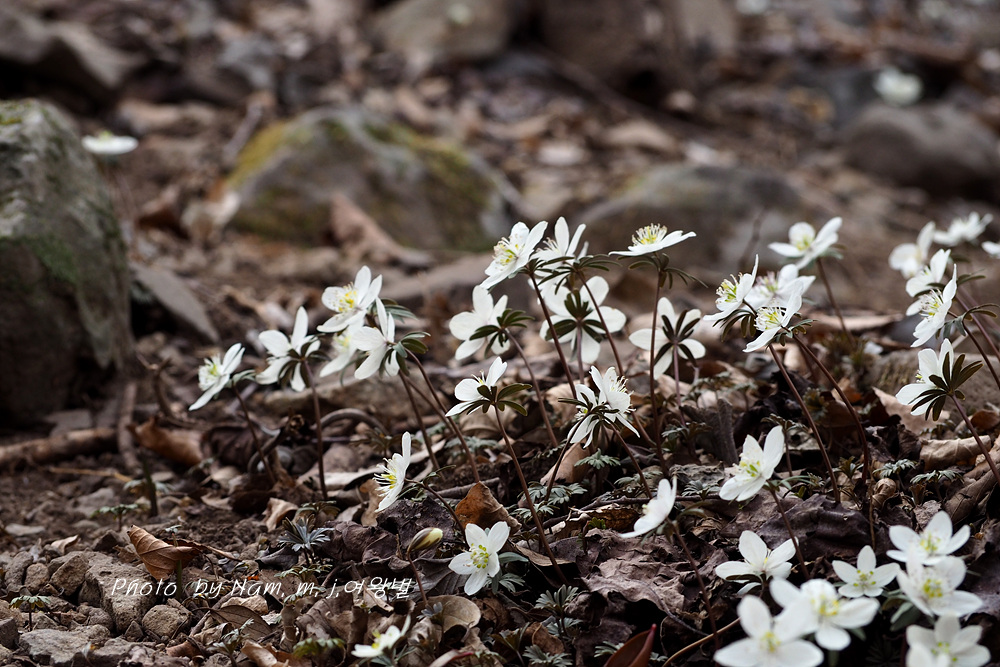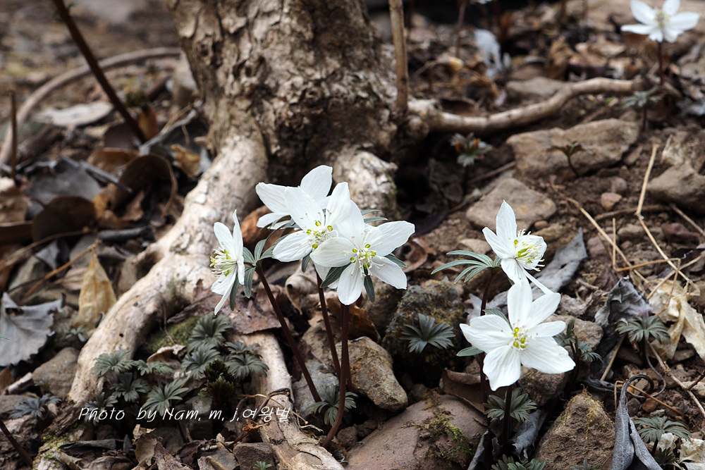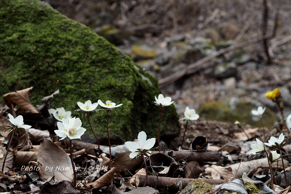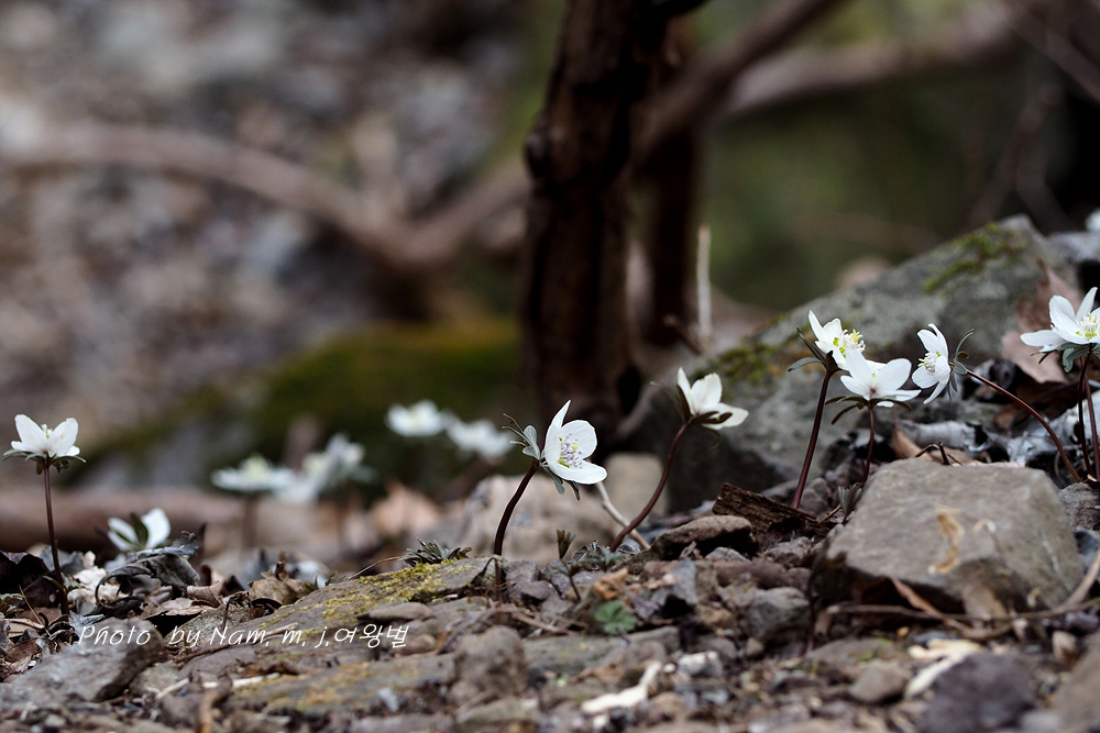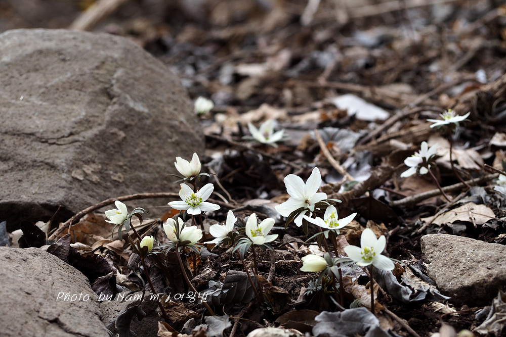 오랜만에 산비탈에 하얗게 하늘거리는 변산바람꽃을 보니 가슴이 설렌다.