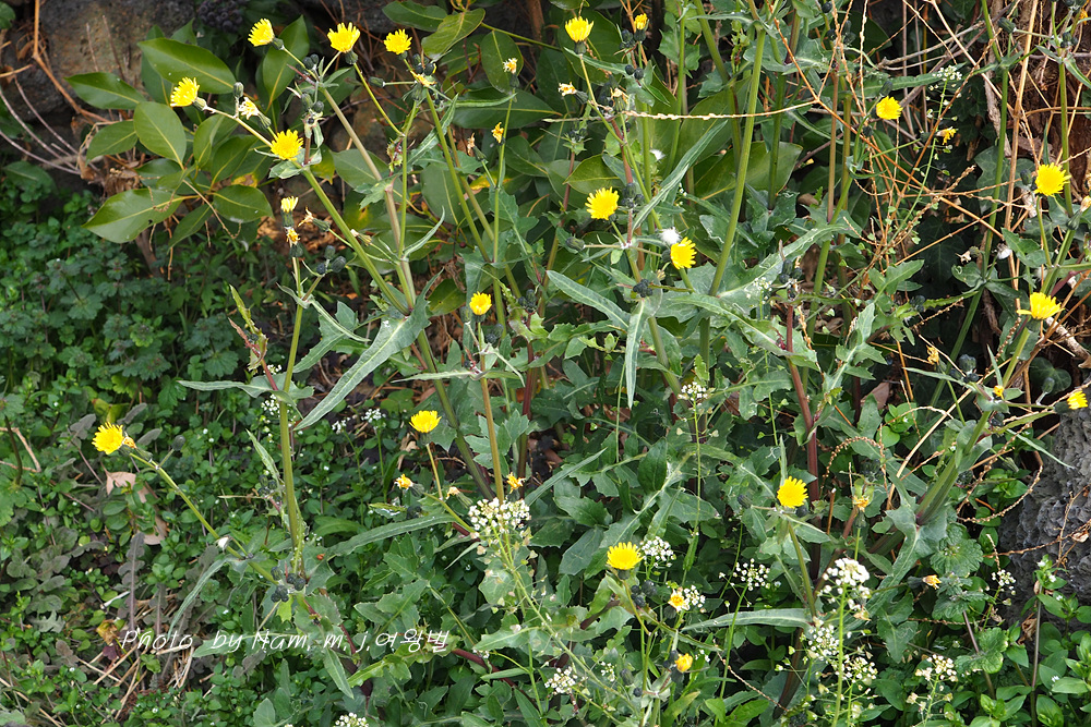 방가지똥이 노랗게 꽃을 피우고 있다. 초세로 봐서는 2월부터 꽃을 피운 것 같다
