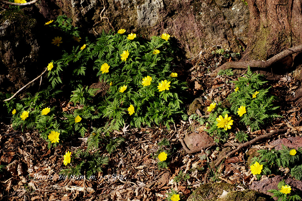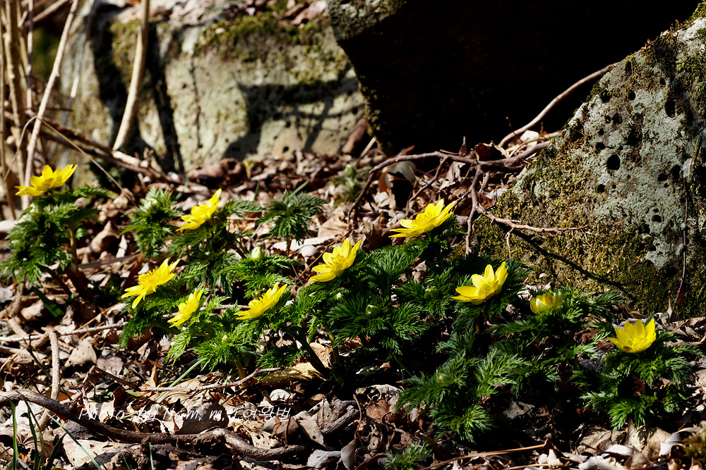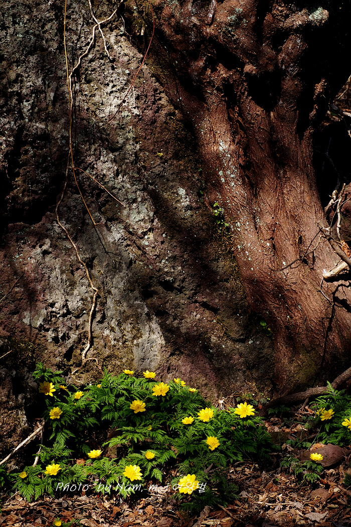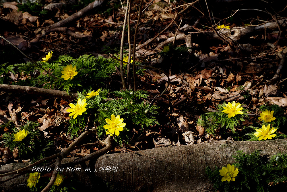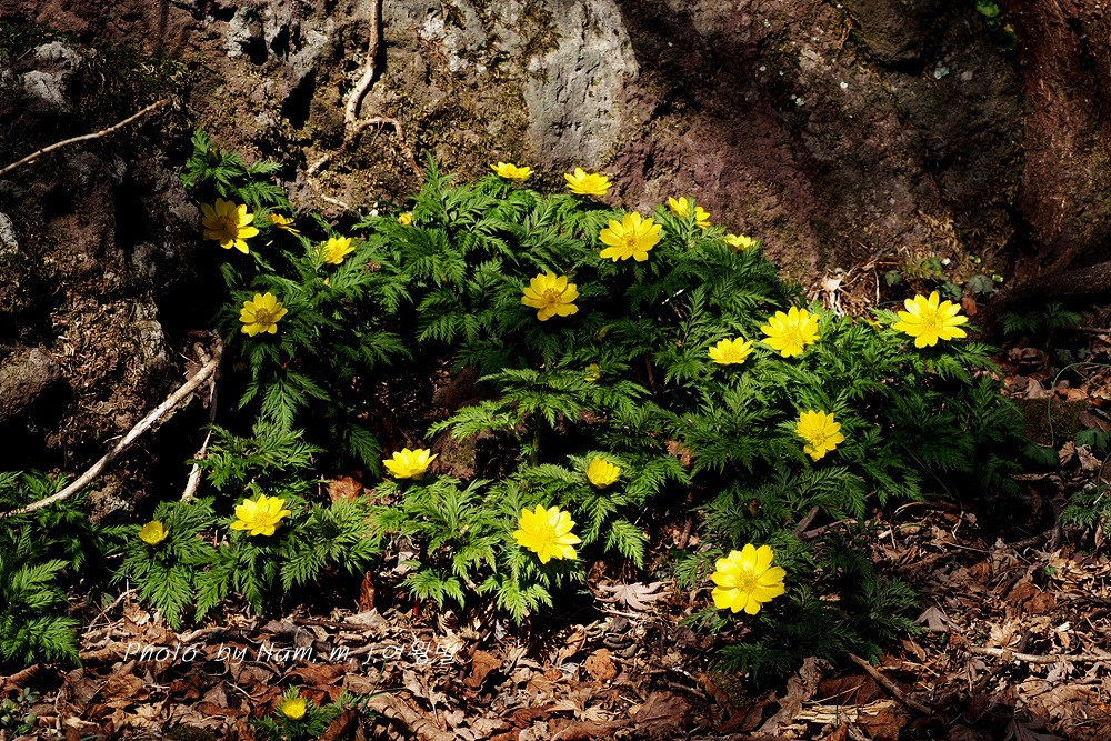 복수초와 달리 꽃이 필 때 잎이 함께 돋아나는 데 잎이 가늘게 갈라지는 점이 특징이다.
