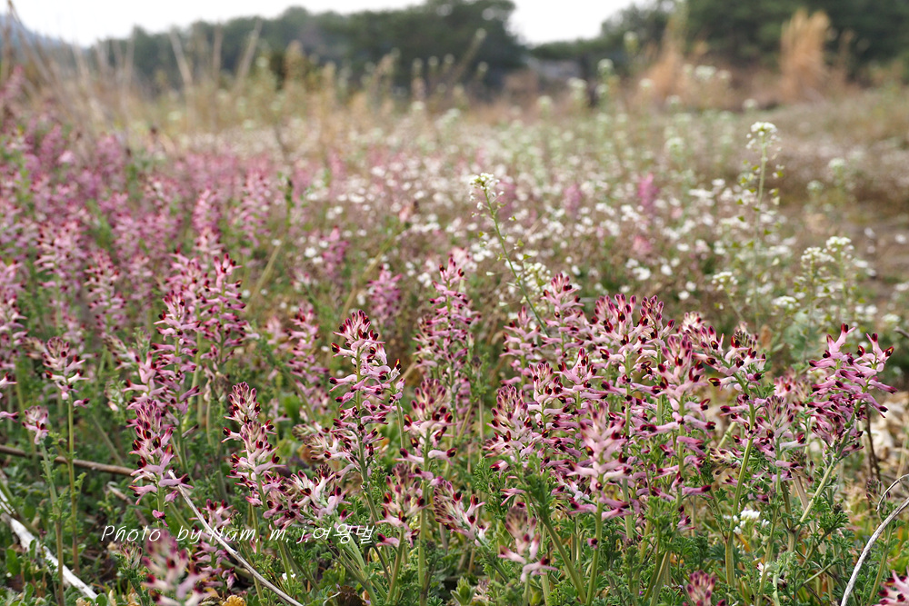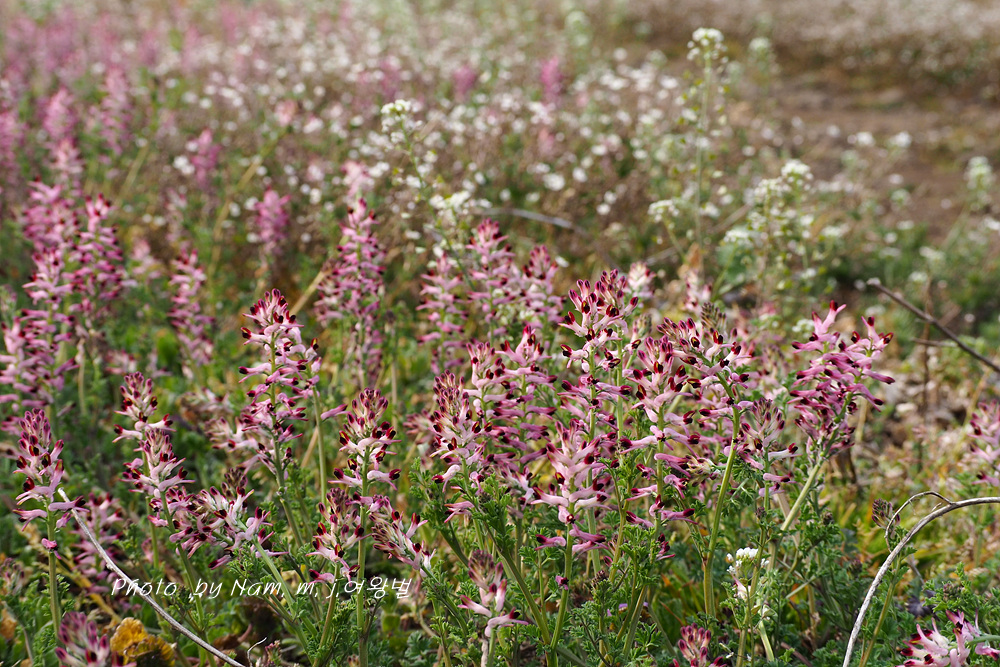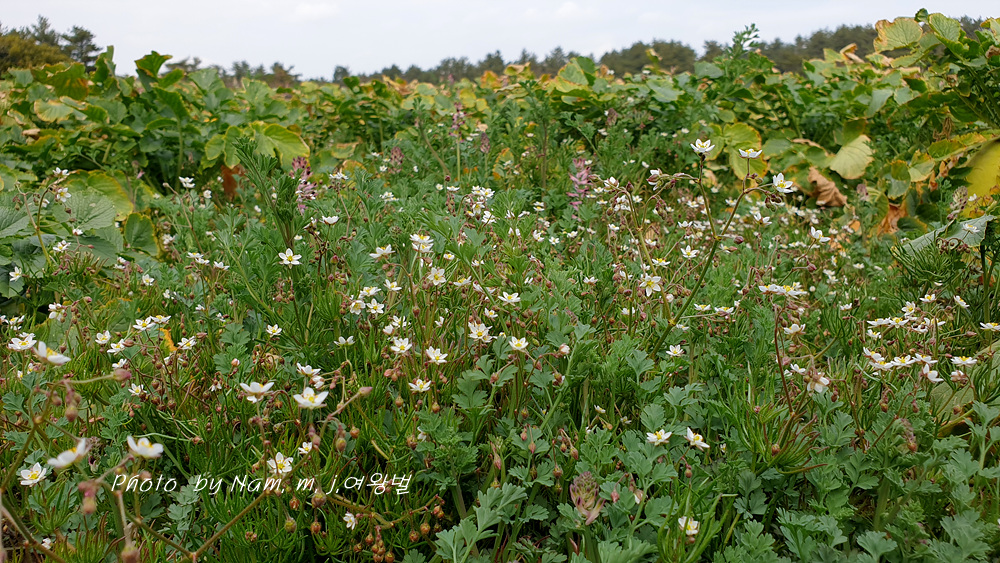 무밭 빈자리가 없을 정도로 무와 둥근빗살괴불주머니가 함께 어우러져 있다.