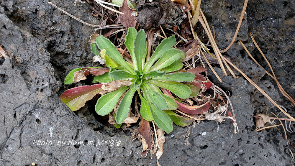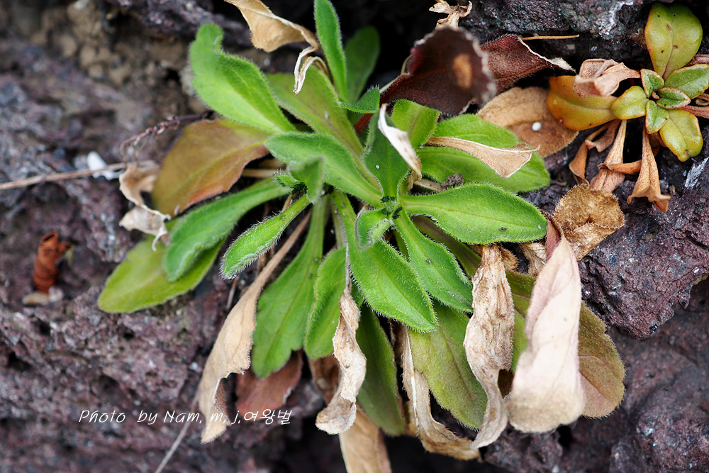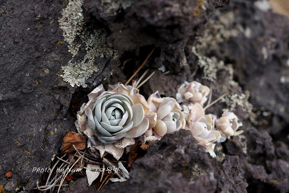 구멍이 숭숭한 현무암에 뿌리를 박고 한 숟갈도 안되는 흙에서 어떻게 필요한 영양분을 섭취하여 꽃을 피우는지...