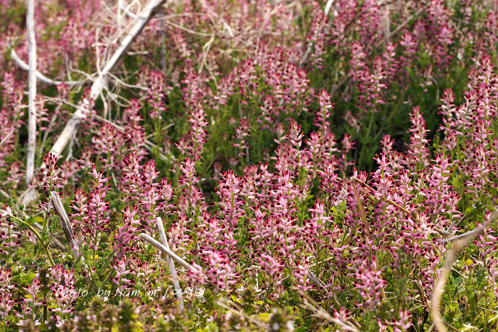 주변을 돌아 다니다 보니 길 가운데 척박한 곳에 나지막하게 자란 애기삭잠풀이 앵글에 딱 맞춤이다.