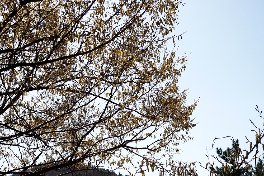 남쪽이라 벌써 개서어나무가 수꽃을 피웠다.