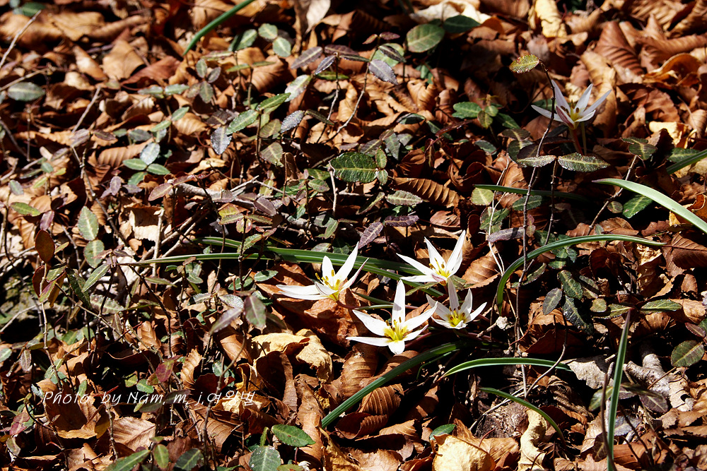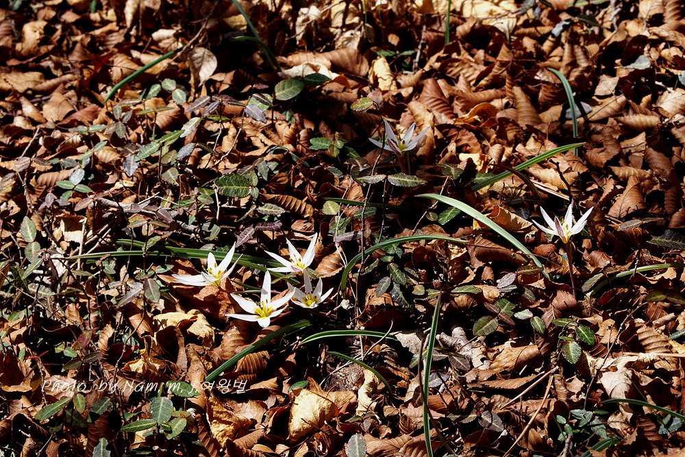 능선부 여기 저기에 산만하게 볕을 받고 있던 산자고